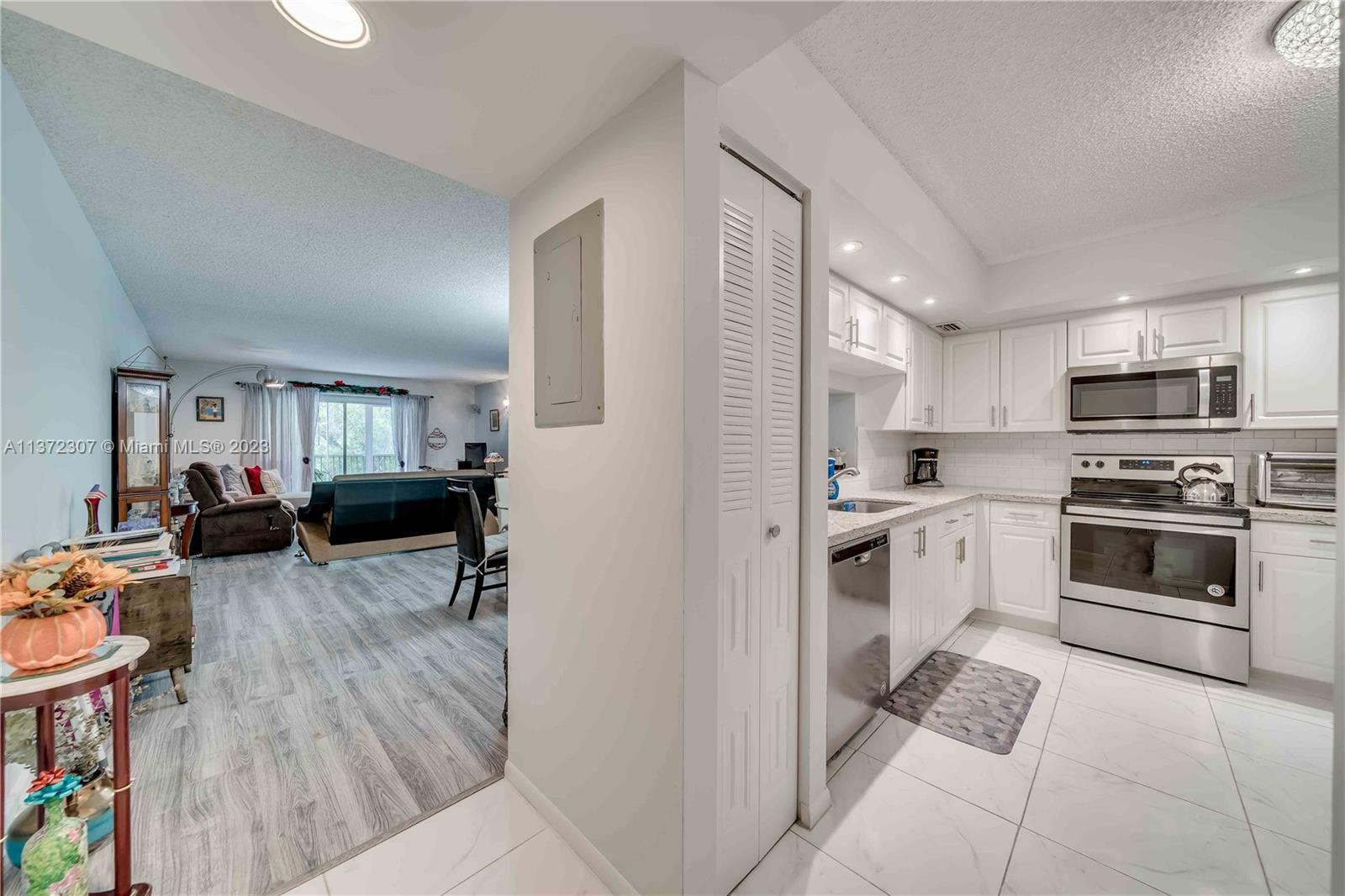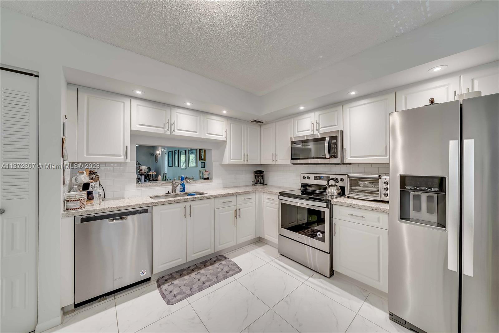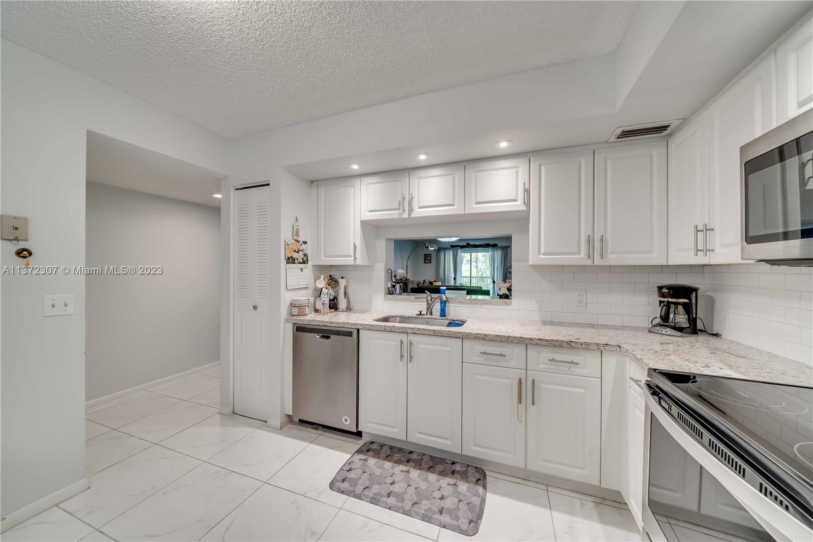 The most sought-after and rarely available N model with 1,065 sq. ft. Immaculate 1 bedroom with 1.5 bathrooms featuring an upgraded kitchen has been meticulously upgraded with modern white shaker cabinetry. Sleek granite countertops with an elegant stone design. Stainless steel appliances. Recessed lighting. Upgraded bathrooms maintain pristine condition. Equipped with a washer/dryer inside. Feel secluded and relaxed with complete privacy from the patio. Western exposure view from the patio. Which looks onto the manicured golf course landscape and a peaceful view of one of the many ponds. INVESTORS WELCOMED! Resort-style million-dollar clubhouse, bus transportation,2 fitness centers, 24-hour security, 8 swimming pools, tennis, movies, theater, billiards, pharmacy, cafe, golf, and more.