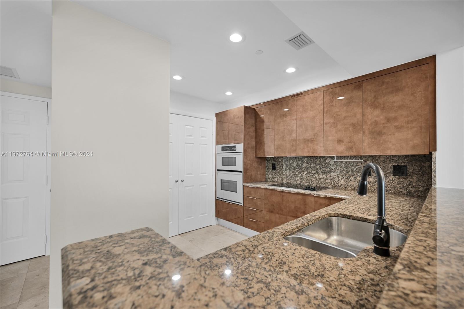 Luxury high-rise w/spacious rooms, high ceilings, natural stone flooring and floor to ceiling windows. Larger than many 2 bedrooms + a 13' deep glass balcony. Bonus flex space ideal for office/media/guests. The generous bedroom suite opens to the balcony and features 2 walk-in closets. Bath features, Hansgrohe fixtures, double vanity, Jacuzzi spa, separate shower & water closet. Yacht inspired kitchen with built-in refrigerator & ovens, Della Casa cabinetry & full-size laundry with storage. 2 garage spaces + separate storage. Fee includes water/sewer/trash/wi-fi/Direct TV/hot water/parking/storage/amenities/reserves/full-service staff. Attended lobby, pool/spa, club room, well equipped fitness center, saunas & business center. Dockage available for lease/purchase at adjacent Port Marina.