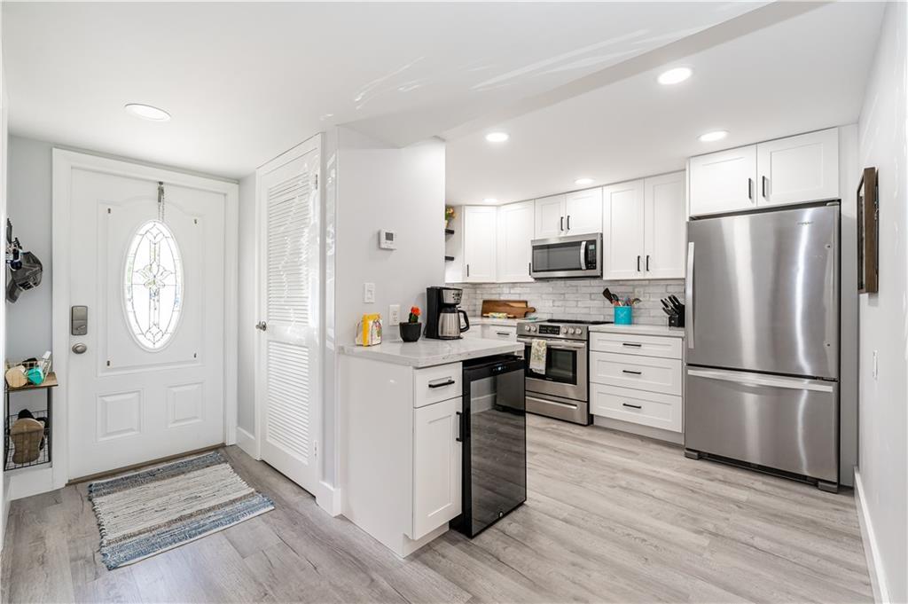 PHASE II - FIRST FLOOR 2BR/1.5 BA. FULLY UPDATED & RENOVATED! WASHER/DRYER INSIDE! Beautiful OPEN KITCHEN w/ SS Appliances & Quartz counters & full decorative backsplash. Extra storage in Kitchen. Built-in Wine Cooler, Self Closing Shaker cabinetry. 100% water proof vinyl plank flooring. UPDATED Bathrooms. GORGEOUS shower. Recreation Lease PAID IN FULL! 24 hr guard gated. FREE golf (except cart fees) on two 18 hole courses (PGA & Par3);Amenities include Restaurant, Billiard Room, Bbq/Picnic Area, Clubhouse-Clubroom, Common Laundry, Courtesy Bus, Exercise Room, Heated Pool, Library, Putting Green, Sauna, Shuffleboard, Tennis, Pickle Ball, Vehicle Wash Area. NO MEMBERSHIP EQUITY! Close to shopping, dining and highways. 15 minutes to the beach. BEAUTIFUL! UPDATED PLUS! CLEAN & MOVE-IN READY!