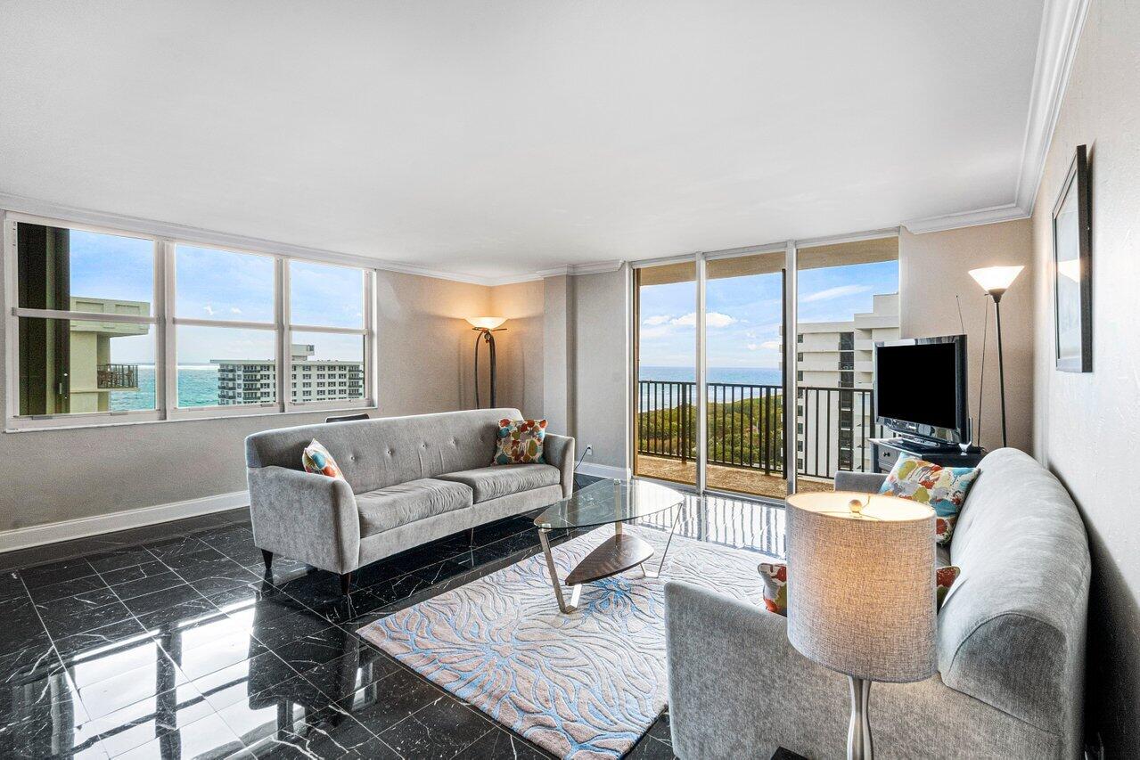 Stunning ocean, intracoastal, and city views from every room will delight you in this SE corner 3 bedroom, 2.5 bathroom residence in ideally located Boca Towers. The residence offers hard surface flooring throughout, open kitchen with granite countertops, full impact protection, updated bathrooms, and a full private in-unit laundry room. Watch the sunrise and sunset from your private balcony every day in this peaceful oasis.This charming seaside condo is in the perfect Boca Raton location: directly on A1A jogging trail, across from the Scenic Boardwalk & Walking Trail,walkable to Red Reef oceanfront golf course, Gumbo Limbo, beach,restaurants, and downtown shopping. Boca Towers offers amenities including a pool, gym, private beach access, boat dock, 24hr front desk security, & manned gate.