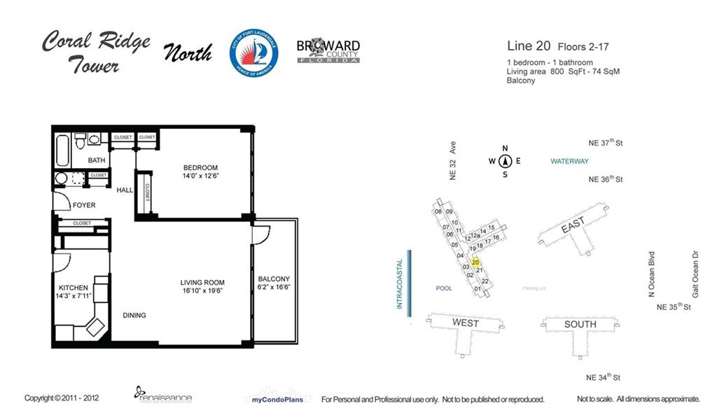 You will fall in love with this one-of-a-kind gem as soon as you open the door! This polished and sophisticated remodel offers a striking reflective ceiling that creates a dramatic cathedral effect and an incredible feeling of spaciousness. This home offers bespoke granite counters, large porcelain tile floors throughout, a cozy den area, and a chic bathroom remodel with walk in shower. Coral Ridge Towers offers all the conveniences of beachside living, with the peace of mind of 24/7 security and full service professional onsite management. This 55+ Co-Op community is located on the barrier island with the beach, grocery stores, and a variety of great restaurants within walking distance. The building offers an array of amenities including a heated pool on the intracoastal, gym, and more.