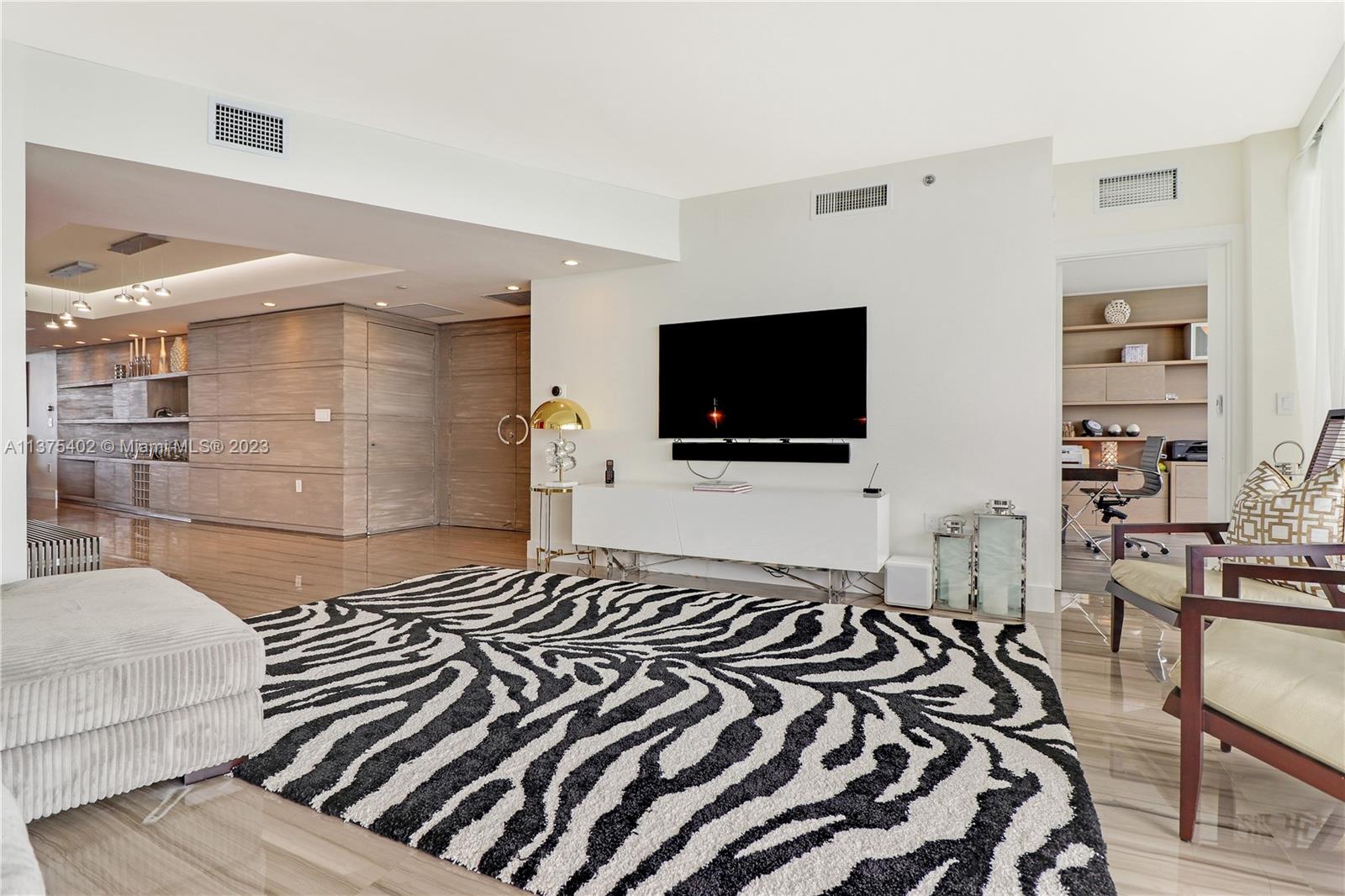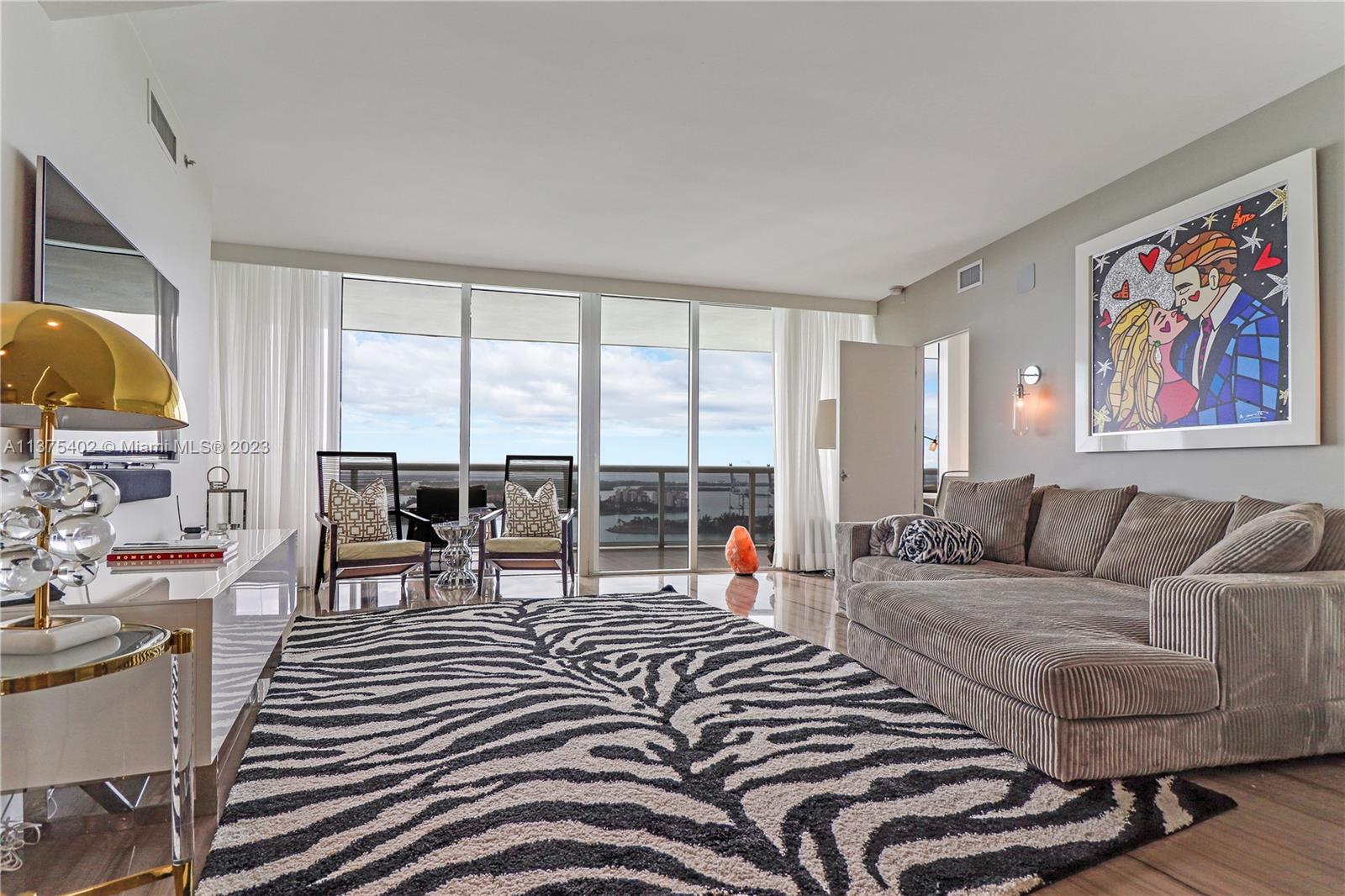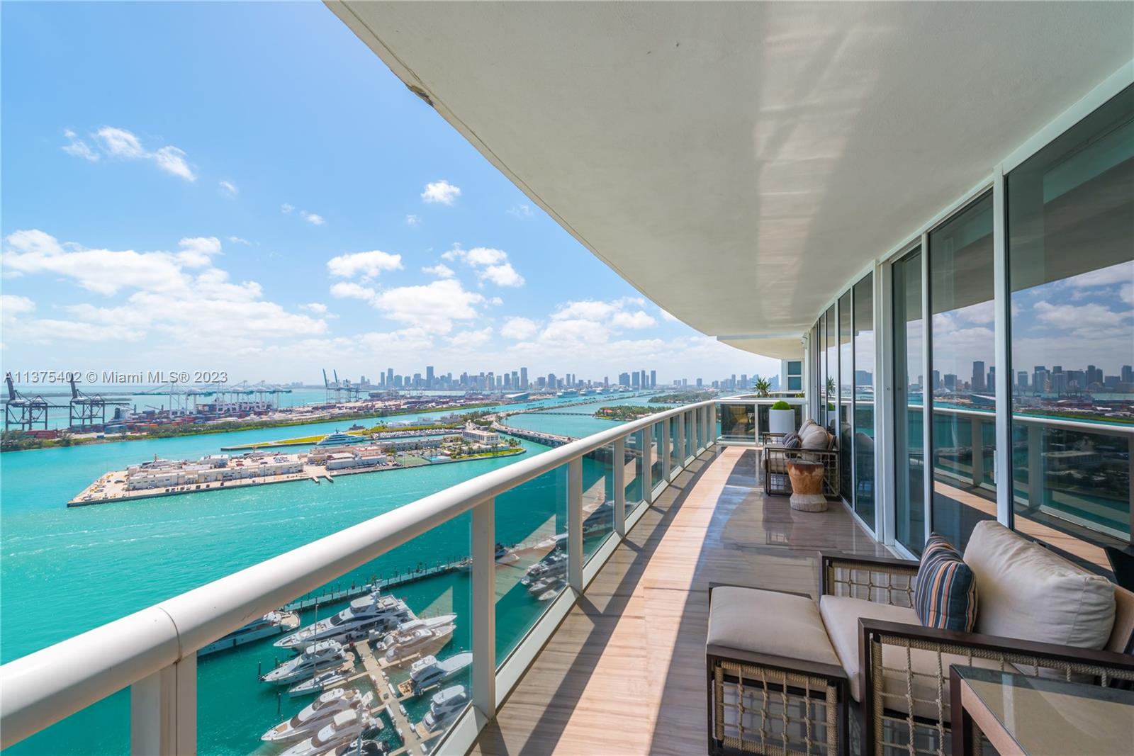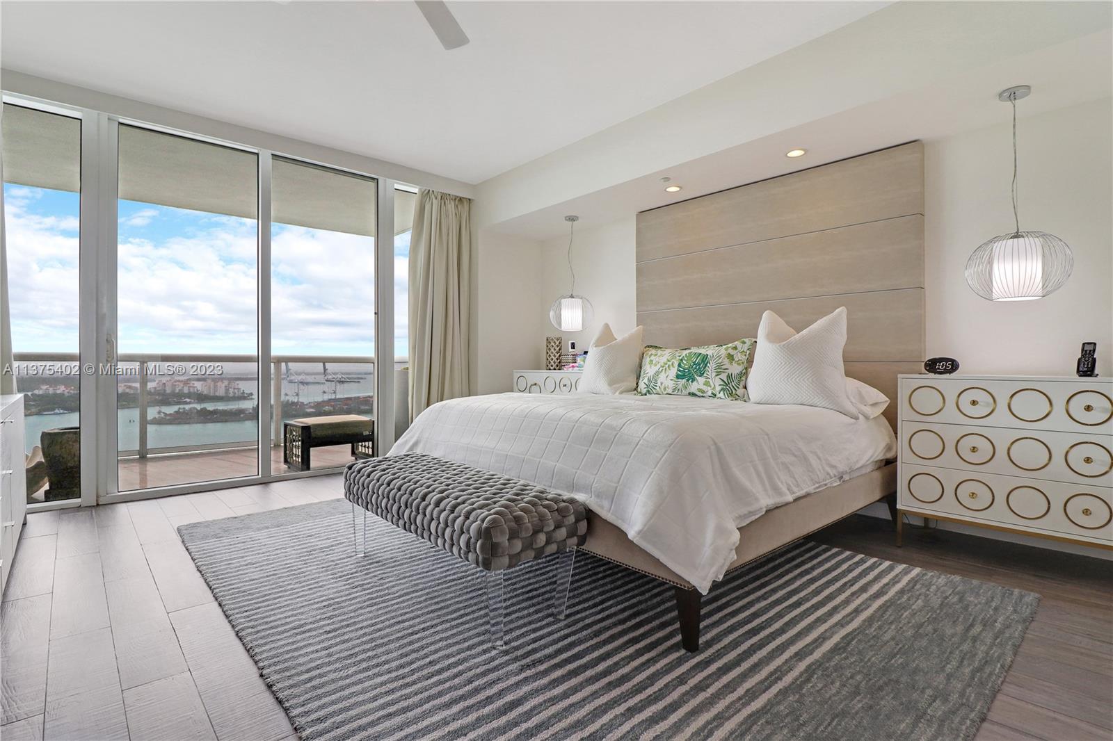 Spectacular renovated flow-through unit at the ultra-chic Murano Grande with breathtaking, unobstructed views of the ocean, Biscayne Bay and the Miami skyline. Residence 2604 consist of 4 BED/4.5 BATHS plus a bonus room that can be used as a maids/guest room. Stylishly appointed with gorgeous marble floors, custom designed built-ins with ample storage throughout, state-of-the-art-kitchen with Miele/Subzero appliances, electronic window treatments, 2 large terraces (sunrise/sunset) and a private elevator vestibule. Murano Grande is one of SOFI’s most exclusive full-service buildings with Five Star resort-like amenities such as a bayside pool, onsite restaurant, gym, spa and tennis court. Adjacent to the Miami Beach Marina, dock your boat and a day at sea is just minutes away.