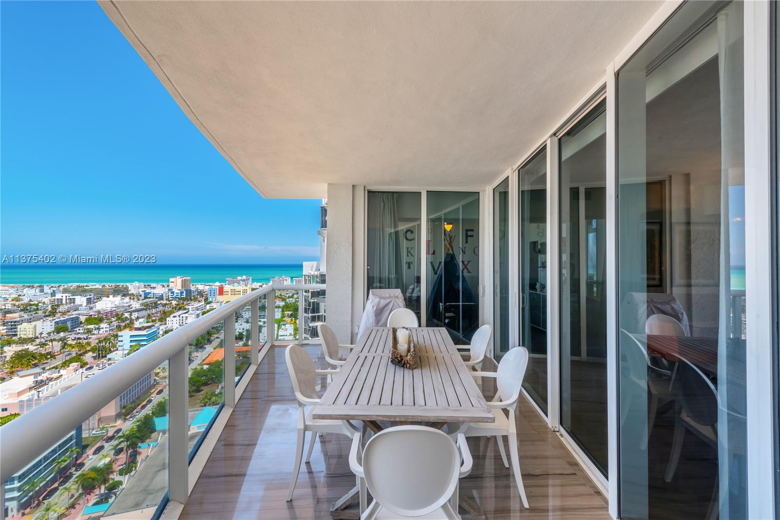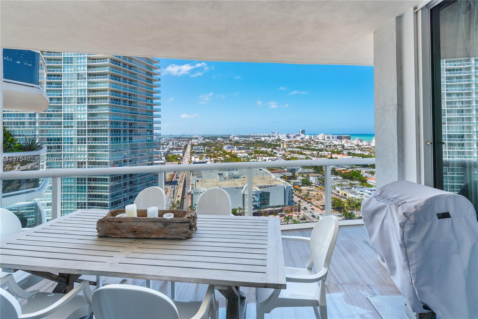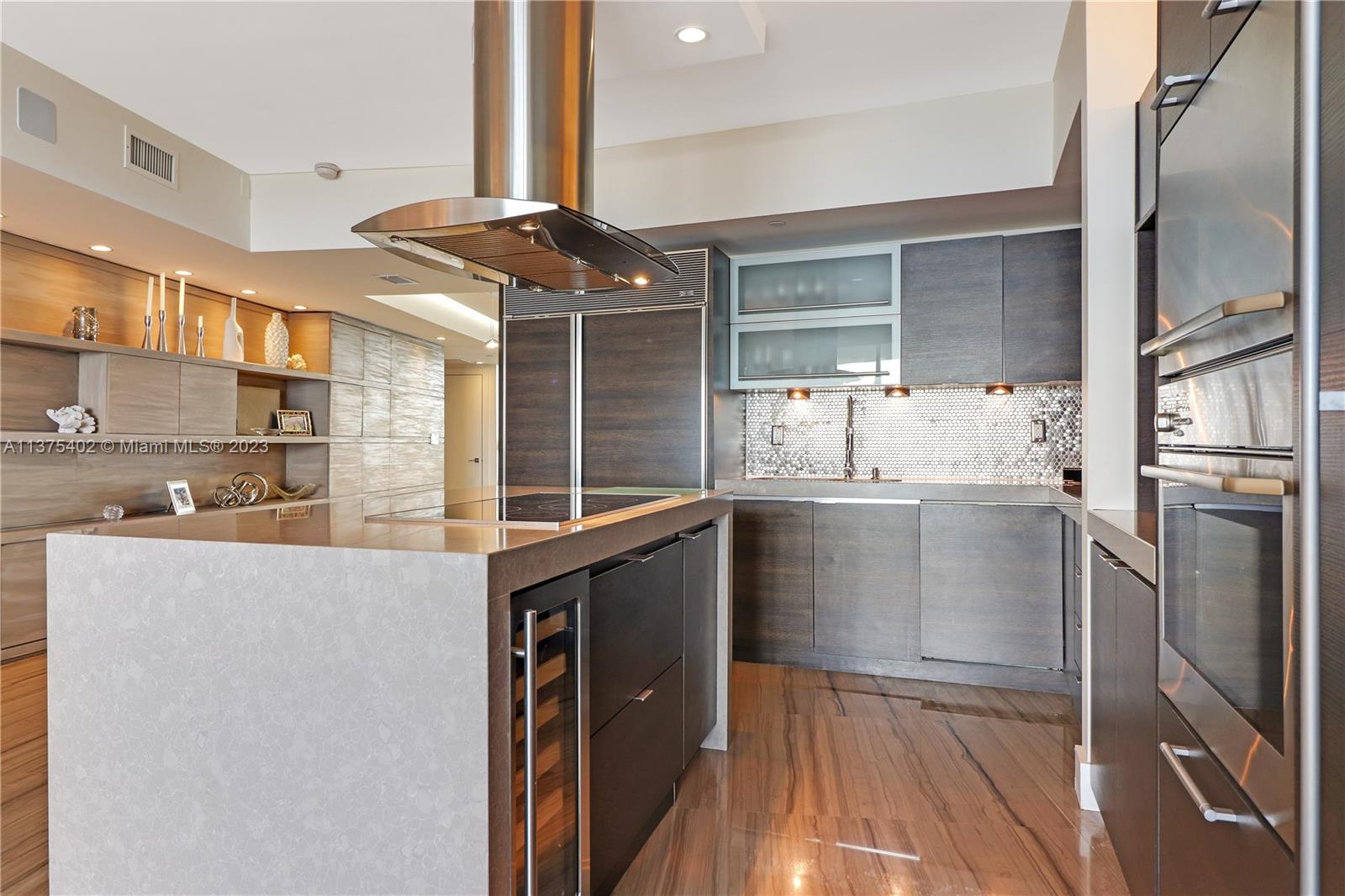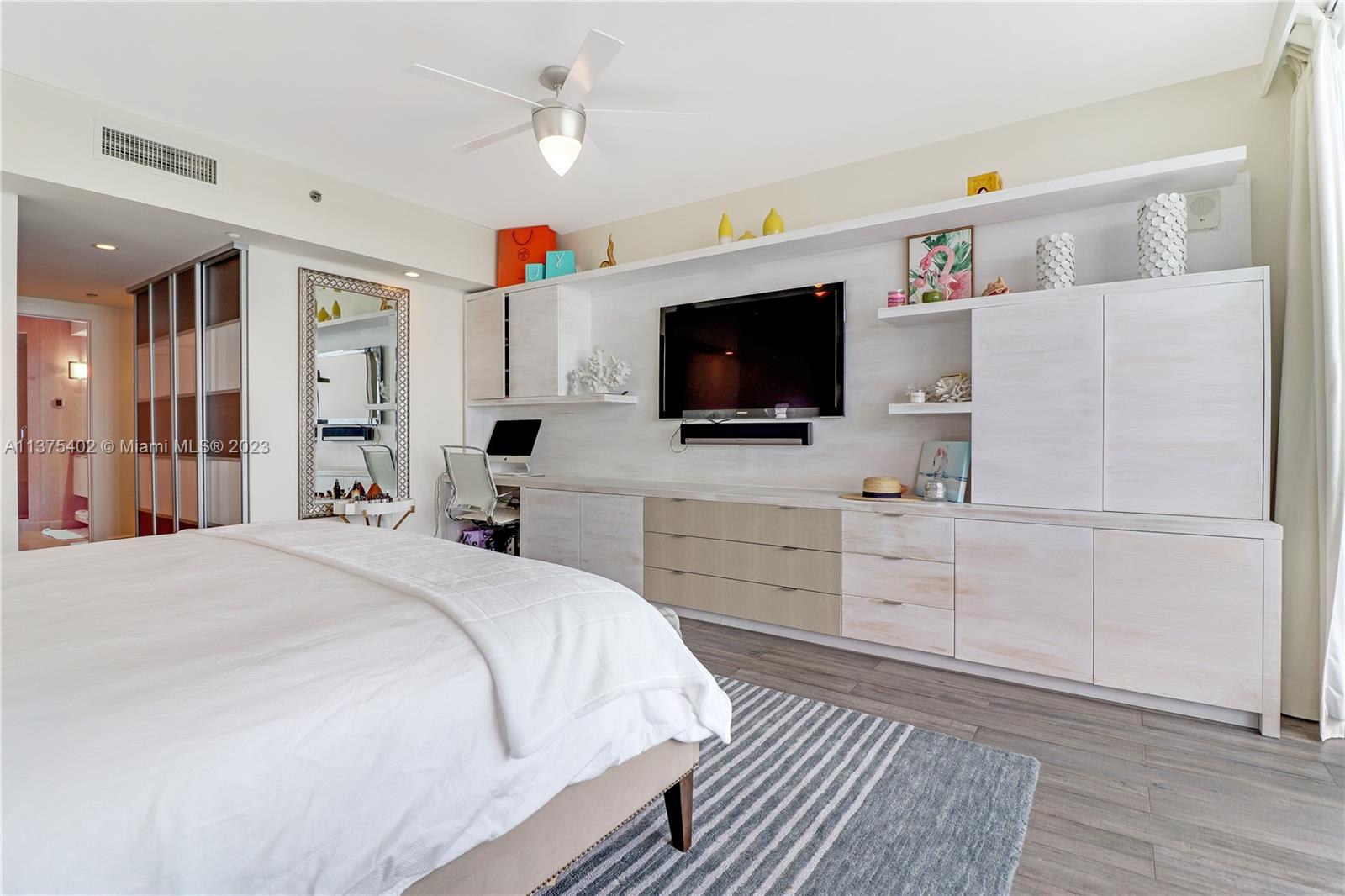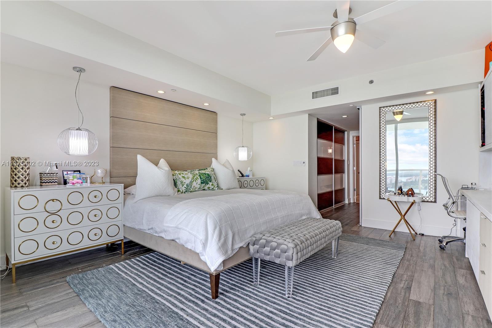 Spectacular renovated flow-through unit at the ultra-chic Murano Grande with breathtaking, unobstructed views of the ocean, Biscayne Bay and the Miami skyline. Residence 2604 consist of 4 BED/4.5 BATHS plus a bonus room that can be used as a maids/guest room. Stylishly appointed with gorgeous marble floors, custom designed built-ins with ample storage throughout, state-of-the-art-kitchen with Miele/Subzero appliances, electronic window treatments, 2 large terraces (sunrise/sunset) and a private elevator vestibule. Murano Grande is one of SOFI’s most exclusive full-service buildings with Five Star resort-like amenities such as a bayside pool, onsite restaurant, gym, spa and tennis court. Adjacent to the Miami Beach Marina, dock your boat and a day at sea is just minutes away.