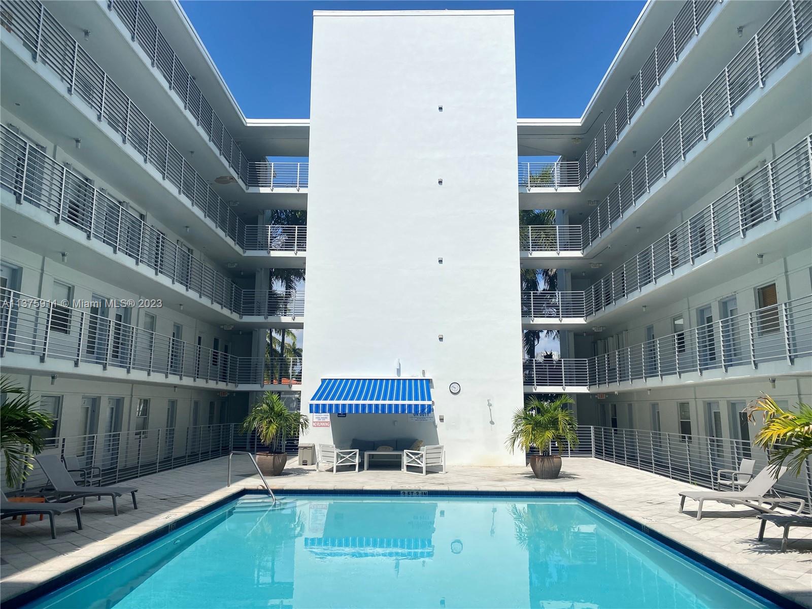 Covered parking, remodeled unit, ready for move-in - one block from Lincoln Road. Euclid East is a secured, 6 story, courtyard building with an interior swimming pool. The unit is located on the top floor with great light and views. Upon leaving the elevator there’s a covered cat walk to the unit. The spacious interior has a south facing balcony off the BD. The bathroom has a shower and jacuzzi and is open to the bedroom. There's great closet space & storage space. Sofa, bar stools and black-out shades are included. Laundry is located on every floor. No assessments and no short term rentals. Quiet and private living in the heart of SoBe close to the beach, the convention center, the New World Symphony, Flamingo Park, restaurants and shops.