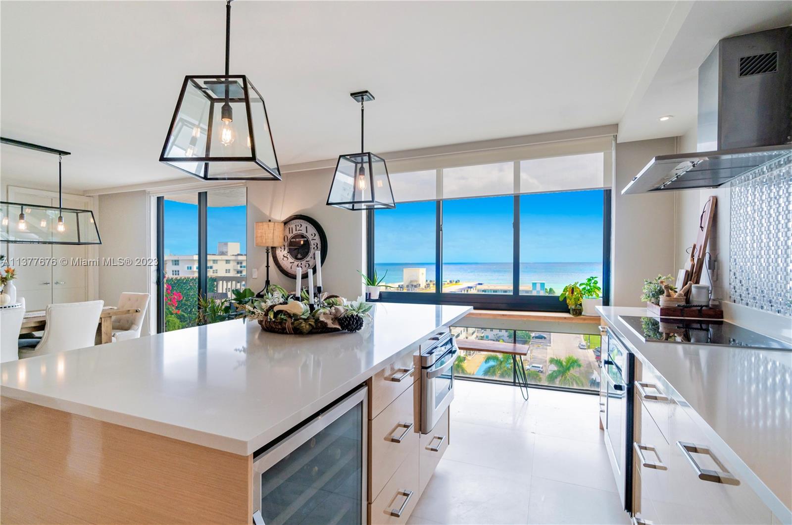 AVOID A LENGTHY, STRESSFUL, AND COSTLY REMODELING PROJECT. Sophisticated & Impeccable Condo with Amazing Direct Ocean Views. Professionally Redesigned with Luxury Finishes, stone floors, customized lighting, Floor to Ceiling Impact Windows/Sliding doors upgraded Electric, and more. The European-style kitchen has high-end appliances, a built-in wine cooler, & Quartz counters. The large Main Bedroom has a walk-in closet and a Stunning bathroom showcasing an elegant vanity area, Jacuzzi Tub, and a glass-enclosed Steam Shower. This renovated building has great amenities: a pool, gym, sauna, front desk service. Washer/dryer and storage on each floor, Prime location, across from a beautiful and peaceful beach. Walking distance of Hollywood Broadwalk, minutes to FLL airport, close to everything