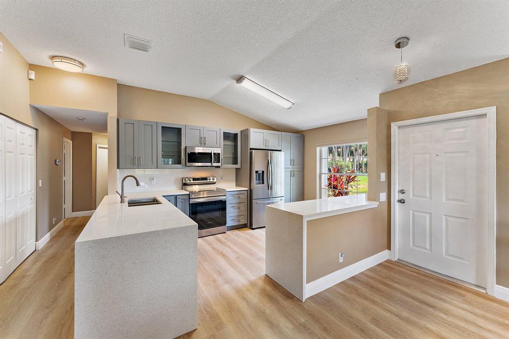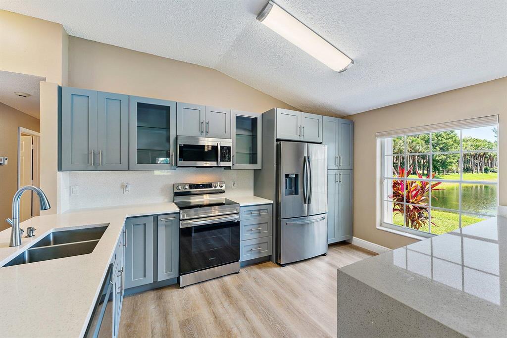 A MUST SEE Bay Colony's at Andros Isle most desirable 3/2/2 Villa on cul de sac with BIG Water Views & Privacy! Newly remodeled kitchen with quartz countertop, all new Samsung SS appliances, including washer & dryer, new Luxury Vinyl flooring throughout. Enjoy a covered screened Lania overlooking tranquil lake. Full accordion hurricane shutters. Well managed HOA includes 24/7 manned gate, monitored alarm, basic CATV w/ WiFi and broadband, Pressure cleaning roof, ext painting, Resort clubhouse with huge heated pool, fitness center, tennis, pickleball and Bocce. Pets welcome. Conveniently located near Turnpike, PBIA, Downtown WPB, Wellington Green shopping and restaurants, plus private access road to Publix Plaza!
