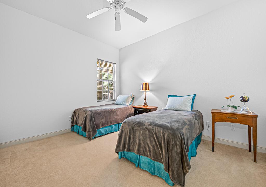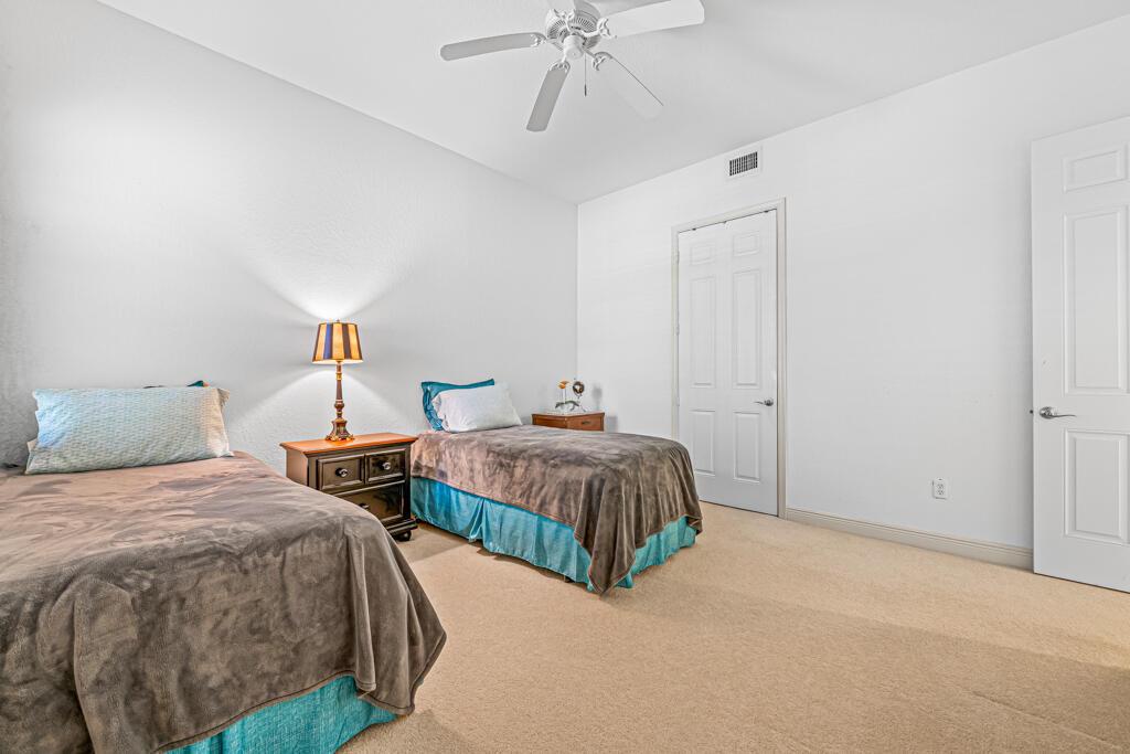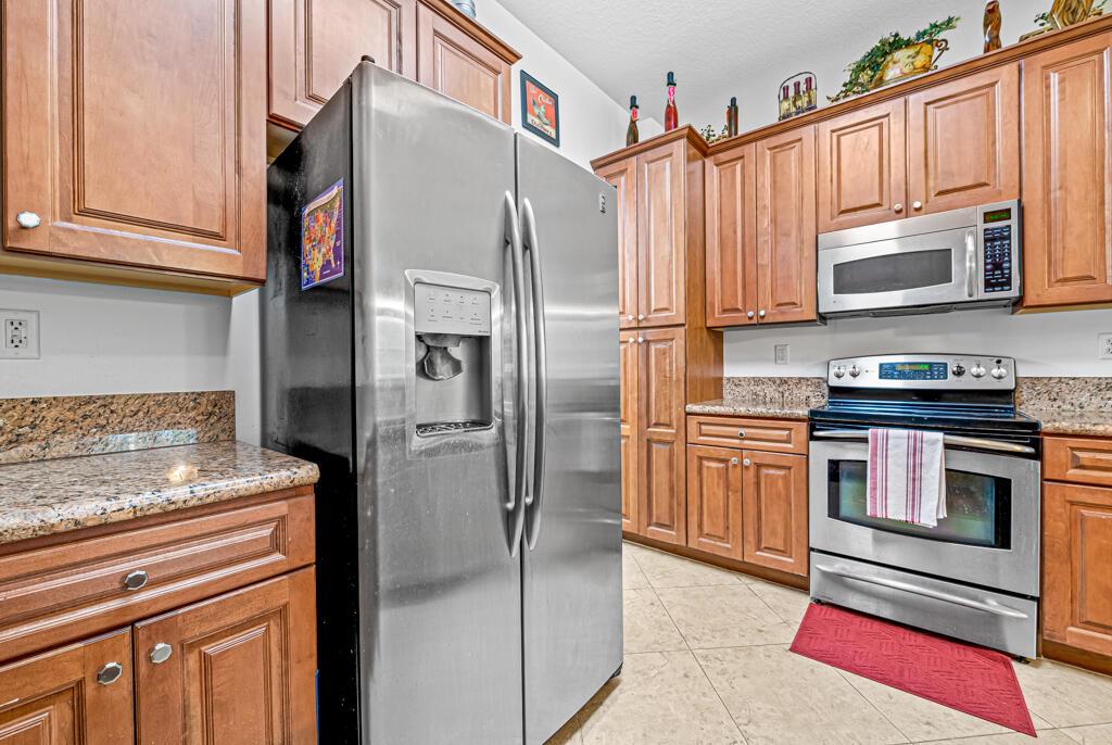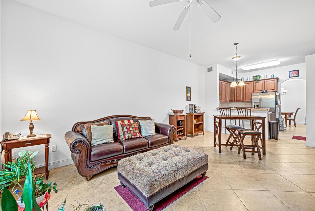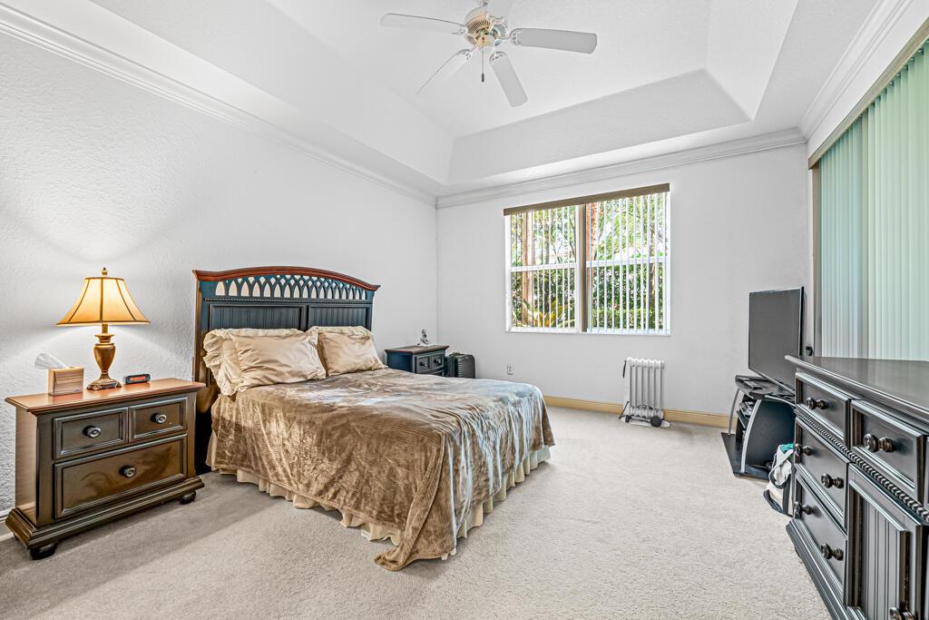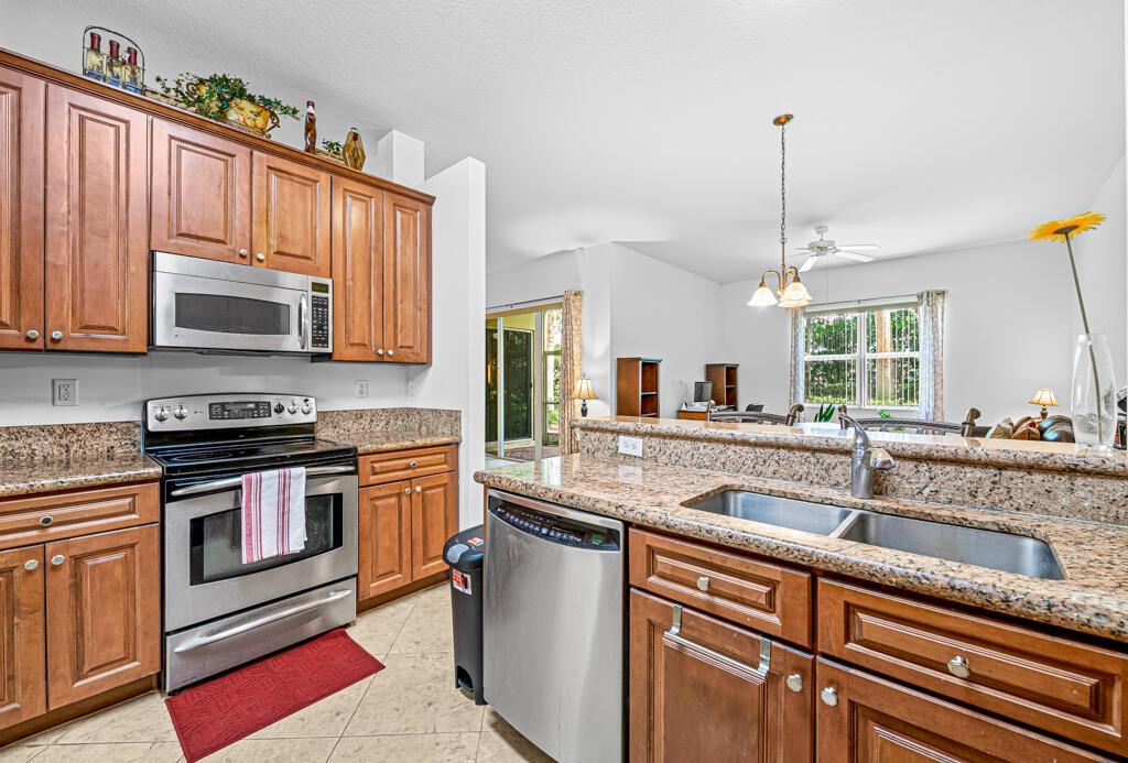 This large 2 bedroom, 2 bath condo is immaculate! Over 1900 sq. ft. of living space. Features include granite counter tops in the kitchen and primary bathroom, stainless steel appliances, walk in closet in both bedrooms, tray ceiling in the primary bedroom, private patio setting, HURRICANE IMPACT WINDOWS AND SLIDERS! Lots of storage space . Condo fee includes premium cable with all channels, high speed internet, water, home alarm, home phone, exterior maintenance, lawn care, roof, insurance of the exterior, no need for homeowners insurance so you can enjoy huge cost savings. You will also have access to all the amenities at the stunning/resort like clubhouse. 3 pools-family, lap and resistance, bocce, pickleball, tennis, shuffleboard, ballroom, fitness room, cards, billiards, hot tub, sau