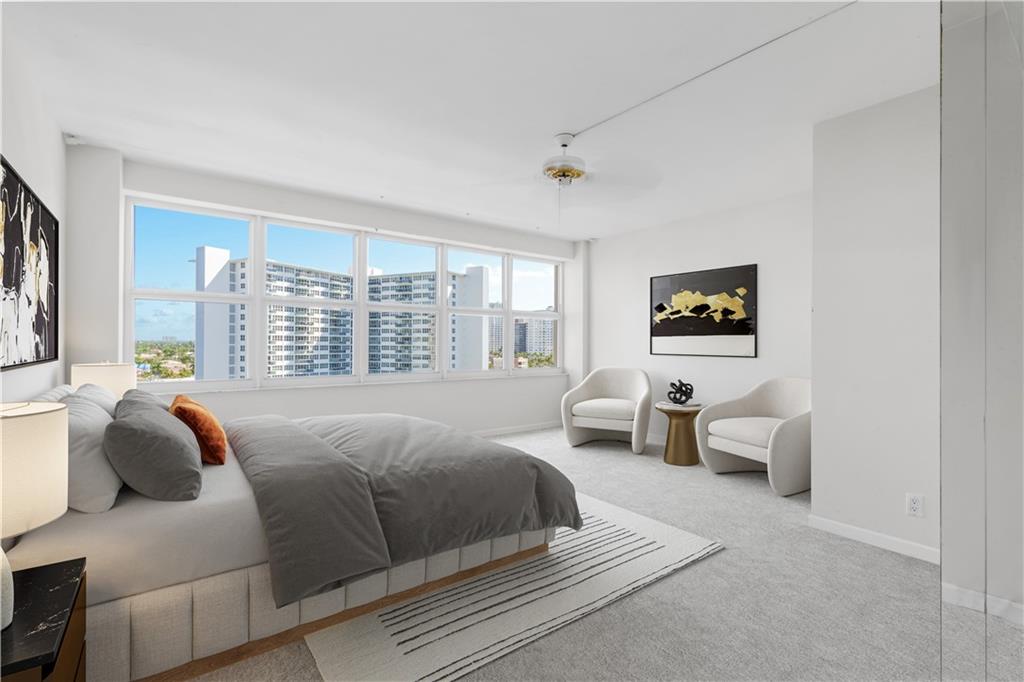 Enjoy the ocean breeze and sweeping views of the Intracoastal, ocean, and surrounding neighborhood from this hidden gem. Bring all your design ideas, this home is ready to make you own. Some photos have been virtually staged and renovated for marketing purposes. This home offers hurricane impact windows and door, and central AC for added peace of mind. Coral Ridge Towers offers all the conveniences of quaint beachside community living, with the peace of mind of 24/7 security and professional onsite management. This 55+ Co-Op community is located on the barrier island with shopping, grocery stores, and restaurants within walking distance. The building offers an array of great amenities including a heated surrounded by lush tropical landscaping, exercise room, and more.
