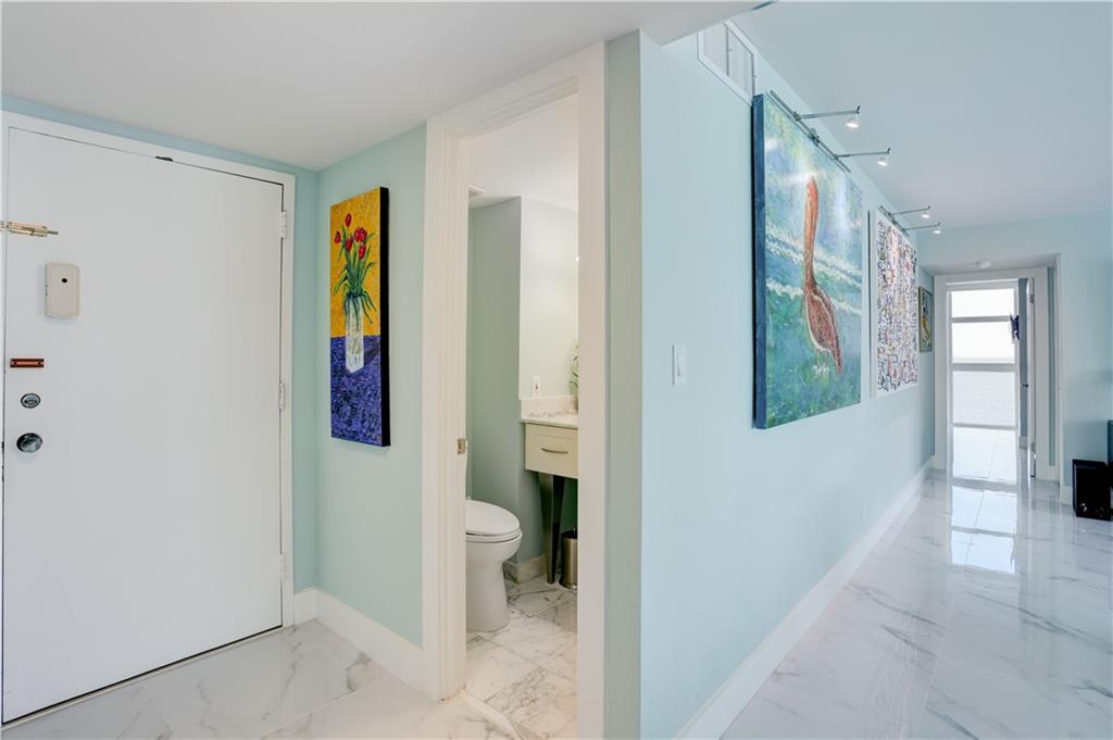 Highly sought after and rarely available Southeast corner unit on a high floor with spectacular direct ocean views all the way to Miami. Beautiful renovations with attention to detail include 48" tile floors throughout, electric blinds, all new interior doors and trim, lighting fixtures, seamless glass shower doors, Toto commodes, popcorn ceilings removed. Open kitchen with stainless steel countertops and appliances. Split bedrooms. Impact windows and doors. Washer/dryer in the unit. Designated parking spot in the garage right next to the door. Amenities include 24 hour security, tennis/pickleball court, pool, sauna, hot tub, fitness center, ballroom and sky lounge. Seller will pay pool assessment in full.
