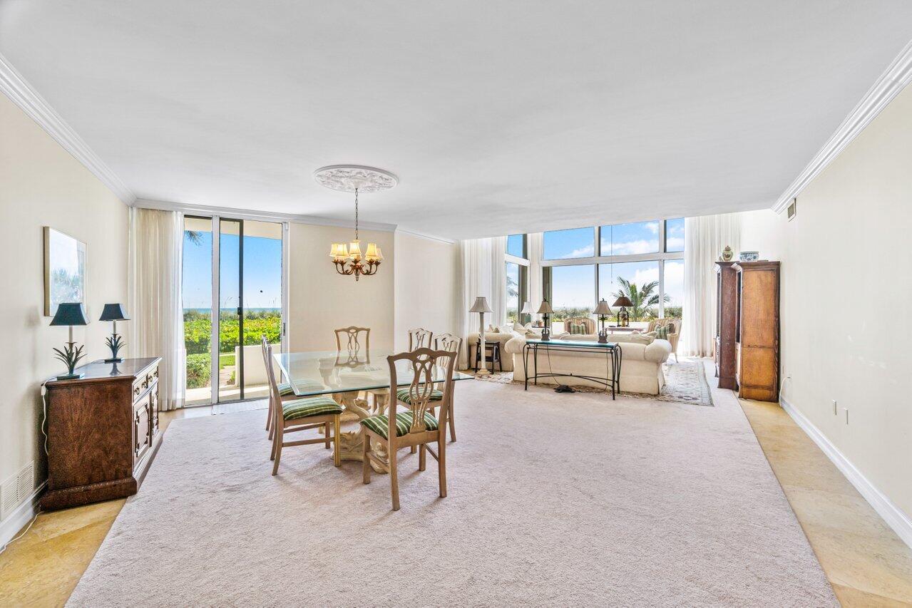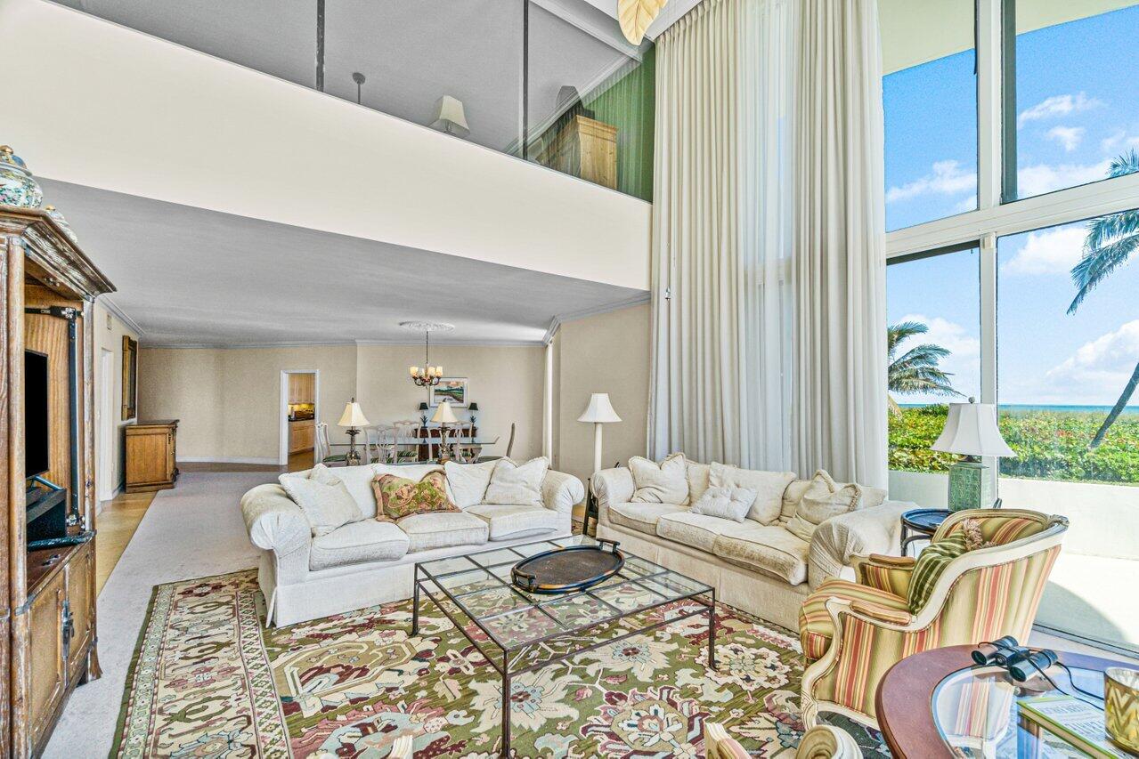 Two-story oceanfront condominium boasts a fabulous southeast exposure, offering breathtaking views. With 2,752 square feet of living space, plus an additional 925 square feet of patio and balcony space, this condo is the perfect oasis for entertaining and relaxation. The property includes garage parking for two cars, ensuring convenient and secure access. Enjoy the marvelous view and take just a few steps to the ocean for a day of fun in the sun.