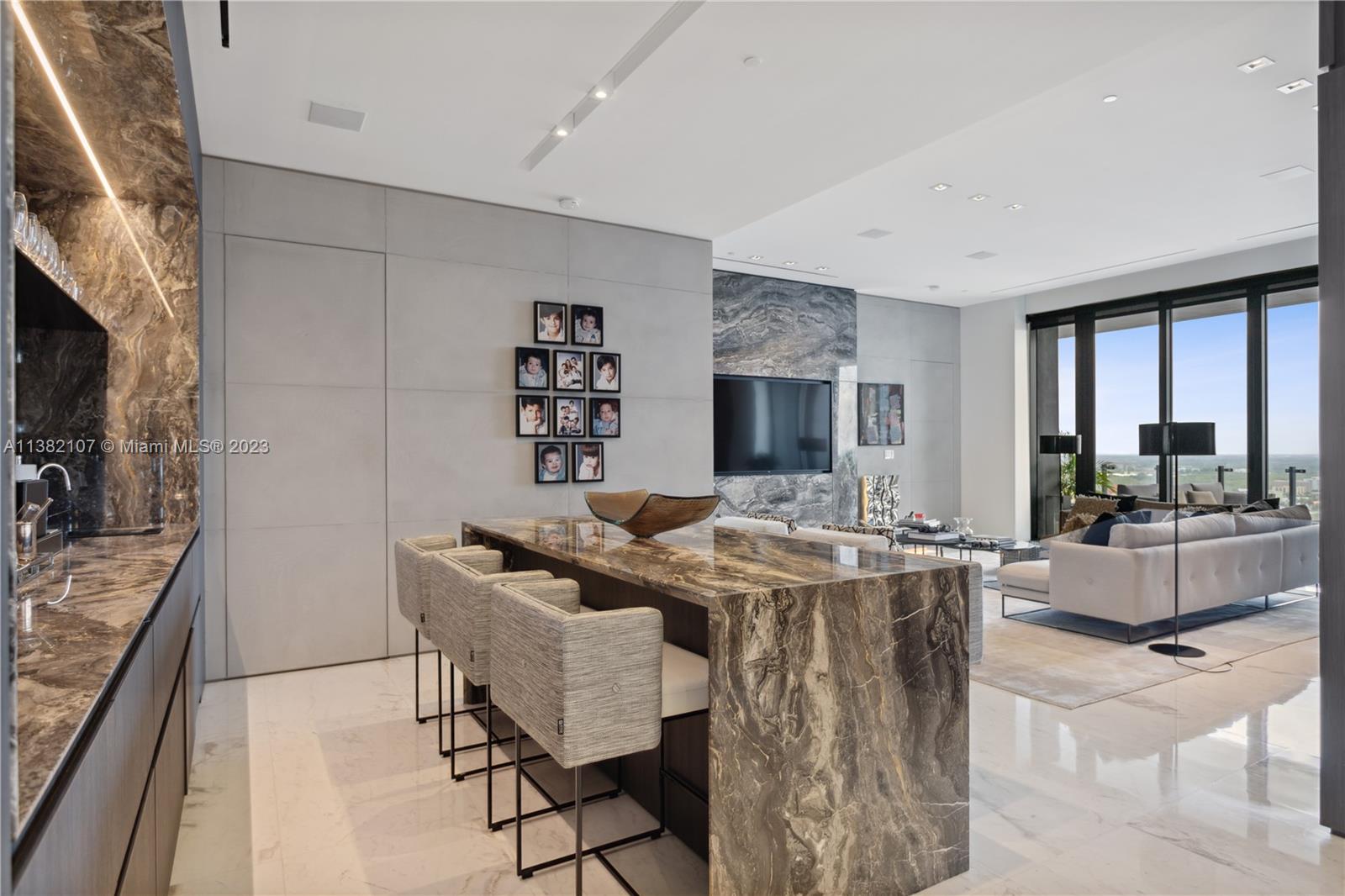Muse Residences is an ultra-exclusive boutique building with exceptional private amenities. This unique, combined double-unit offers 6 bedrooms, 7.5 bathrooms, and a spacious, open floor plan. Smart-home fully automated with Floor-to-ceiling windows and 14-foot ceilings invite natural light to illuminate the entire home, while showcasing incredible panoramic direct ocean and skyline views. The residence was redesigned by the renowned Troy Dean Interiors. Additional special features include right to park up to 6 vehicles, wine storage, and 2 private elevators.
