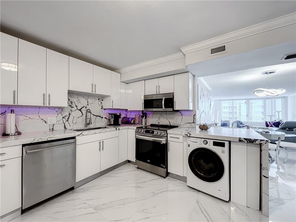 If your MUST HAVE list includes: being on the sand, with beautiful views of ocean and city, 1600 sq ft of living space, completely renovated unit with washer/dryer in the unit, split bedrooms, kitchen that was just updated with quartz waterfall design and modern cabinetry. The building has lobby security 24/7, pool, hot tub, gym, sauna, tennis, panoramic view from the party room and lounge area, 1 garage space and much more. All of this and the building is located in walking distance of restaurants, night life and a few minutes' drive south to Las Olas & Ft. Lauderdale for Broadway plays to the north Boca Raton, Delray Beach for more entertainment and dining. This is what you'd find living at the Renaissance!