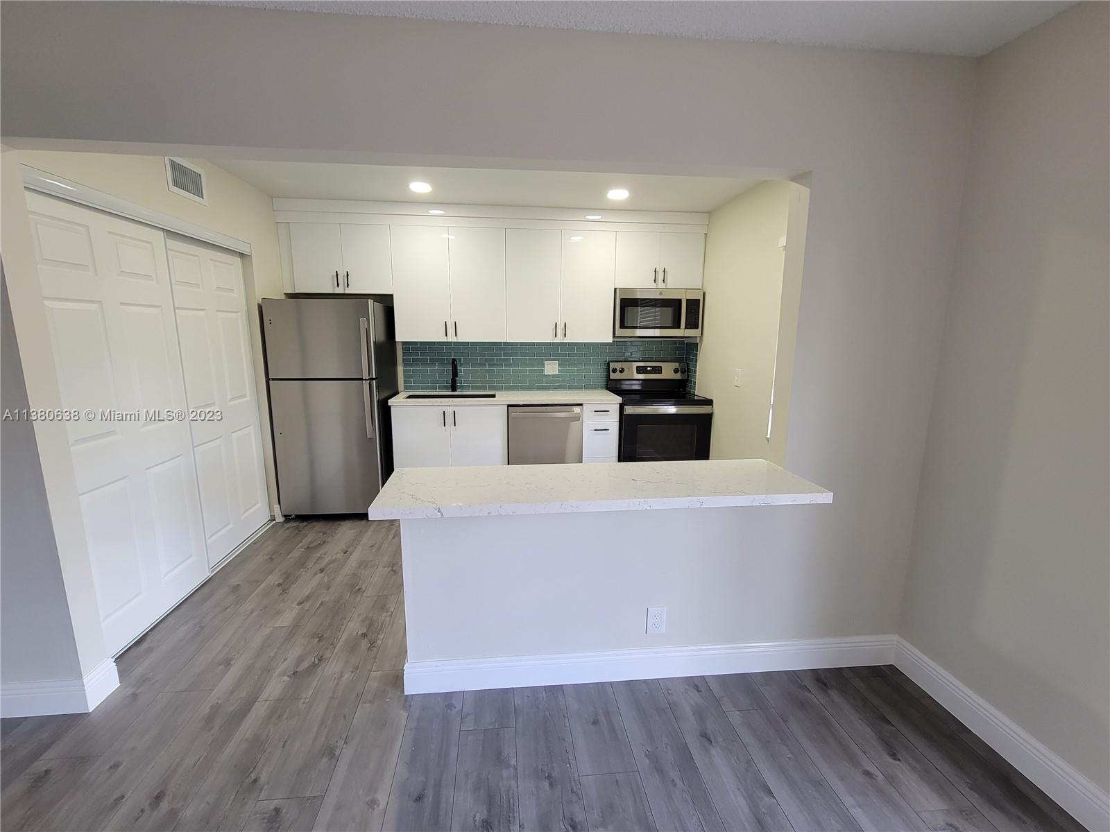 Wow!!! Under 300k for this Fully Renovated 3 bedroom 2 FULL bath end unit townhome in Palm Aire Village with private fenced in backyard. Nothing has been left untouched in this beautiful villa. New kitchen with quartz countertops, Ge stainless appliances and new soft close custom cabinets. All new bathrooms with custom tile work. New flooring, paint, doors, lighting, water heater, fans, etc. A/C is only a few years old. Laundry with full size washer/dryer. Fully fenced in private backyard. This house is move in ready and ready for your buyer. HOA includes Roof, Exterior, Landscape of common areas, Water, Exterior Painting and Insurance. Can be rented from Day One with Association approval.