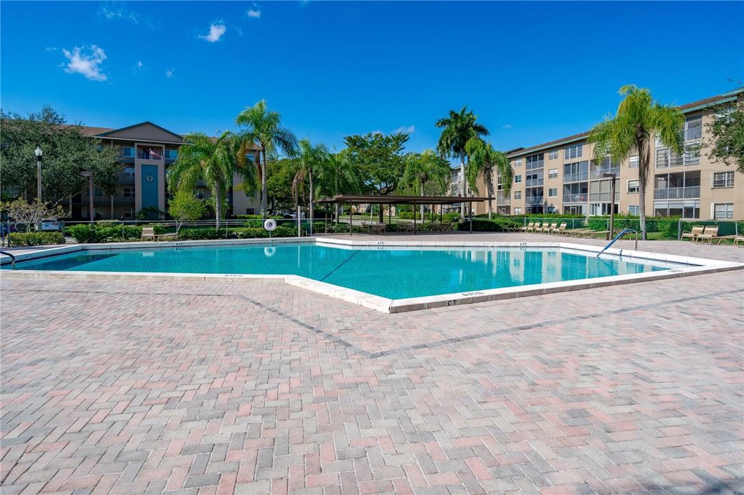 Don't miss out on this incredible opportunity to own a 2 bedroom, 2 full bath corner, first floor condo in Century Village! This unit offers a split floor plan for privacy, as well as a screened-in patio and extra-large primary bedroom with walk-in shower and closet. Protected windows with accordion shutters ensure your safety and security. Plus, enjoy the added convenience of a washer and dryer in the unit. The 55+ community offers low-maintenance living, with maintenance of the grounds, clubhouse, pool, tennis, golf, amenities, clubs, activities, and bus service. Conveniently located on the first floor, this condo is perfect for those who prefer not to use stairs. Experience an active and social lifestyle in a safe and welcoming environment.