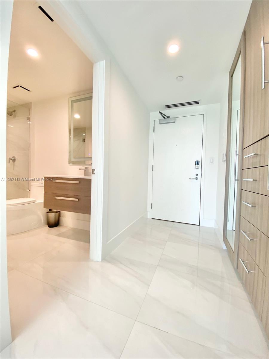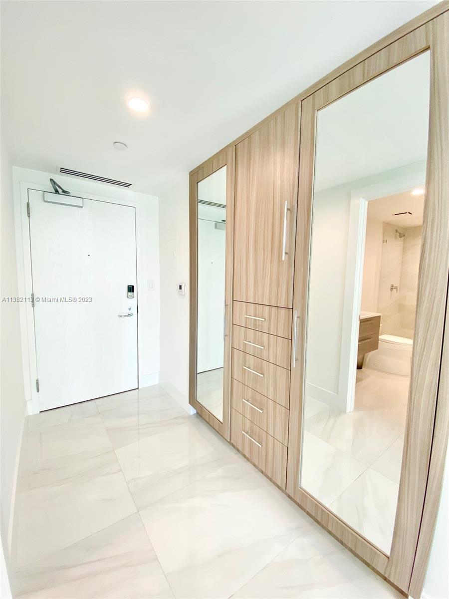 Spectacular, Warm and Cozy! This Gorgeous Cabana is fully renovated featuring approx. 440 sq ft of additional space for existing condominium owners. Discover stunning interiors, marble flooring, custom-made closet, fixtures & specialty lighting creating an inviting atmosphere. The balcony has open and relaxing views of the front at the community overlooking palm trees, water canal & walking areas. Perfect for a morning coffee or an evening cocktail. With natural lighting, high ceilings & great open views, this cabana is the perfect place to escape, unwind, relax. Located at Oceania IV Bldg., 2nd Floor. This cabana is a must-see for anyone looking for additional space, just steps away from the main condominium residence. A unique, Rare Opportunity.