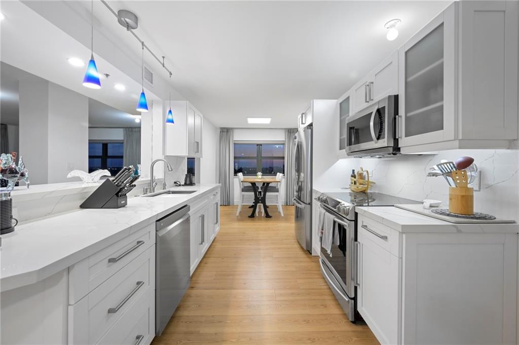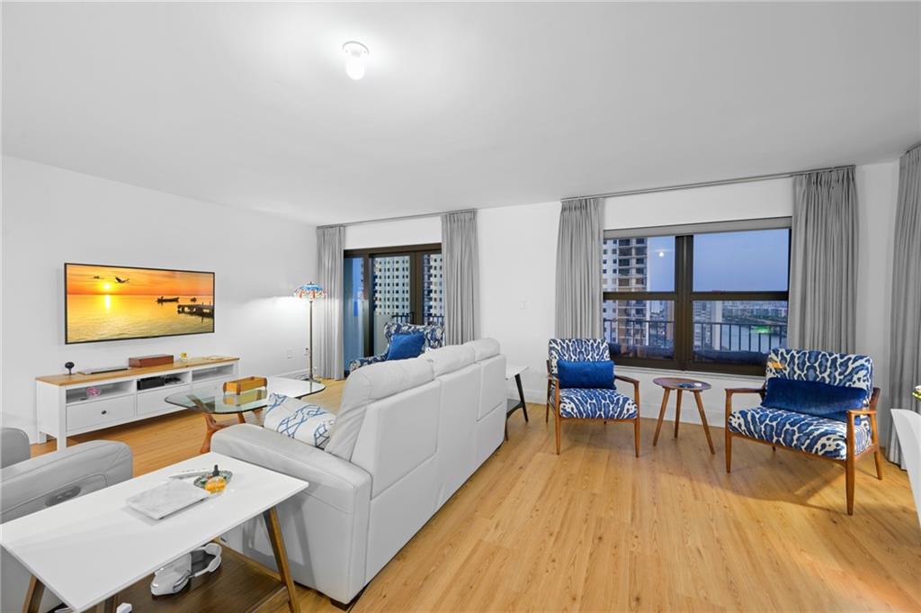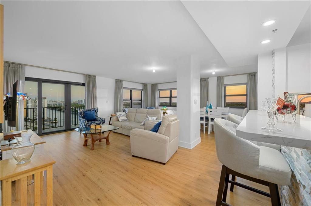 Welcome to Paradise. Unique opportunity to own a Oceanfront residence. Corner unit in a great location. Breathtaking Panoramic view. Watch the sunrise over the ocean & the sunset over the intercoastal. This renovated Beach Home has many upgrades. Premium padded vinyl floor & whisper mat sub floor, custom made hardwood oak doors with glass insert, top of the line sound & thermal insulated Hurricane impact windows & doors, custom designed solar shades & curtains from Baers featuring Somfy wireless operation by remote or phone app. Kitchen & laundry room feature all plywood white cabinets with soft close dove tail drawers. Motion activated Koehler faucet. Quartz countertop & back splash. Top-notch LG Stainless Steel appliances & matching Samsung induction range. Bathrooms & closets upgraded.