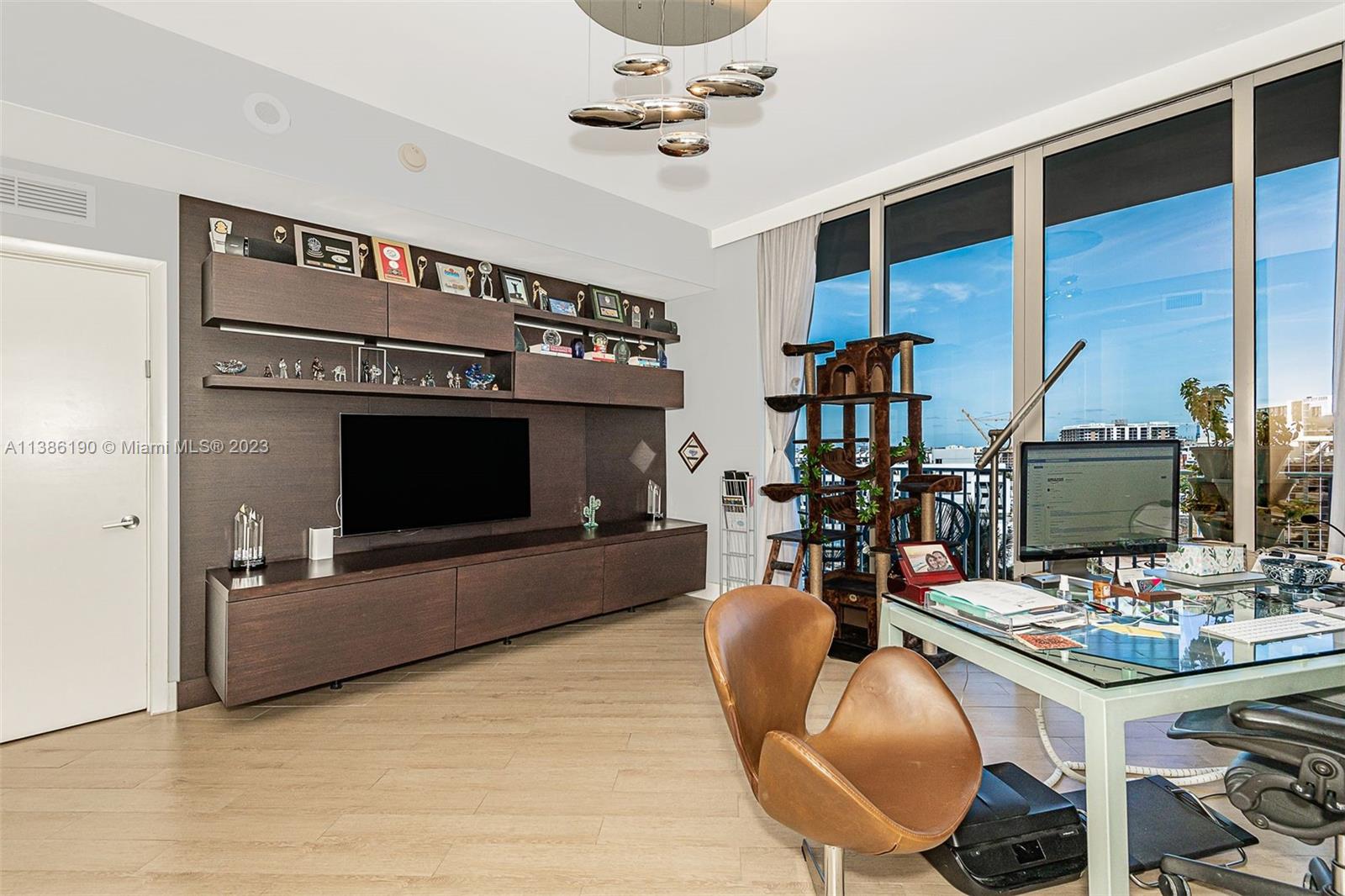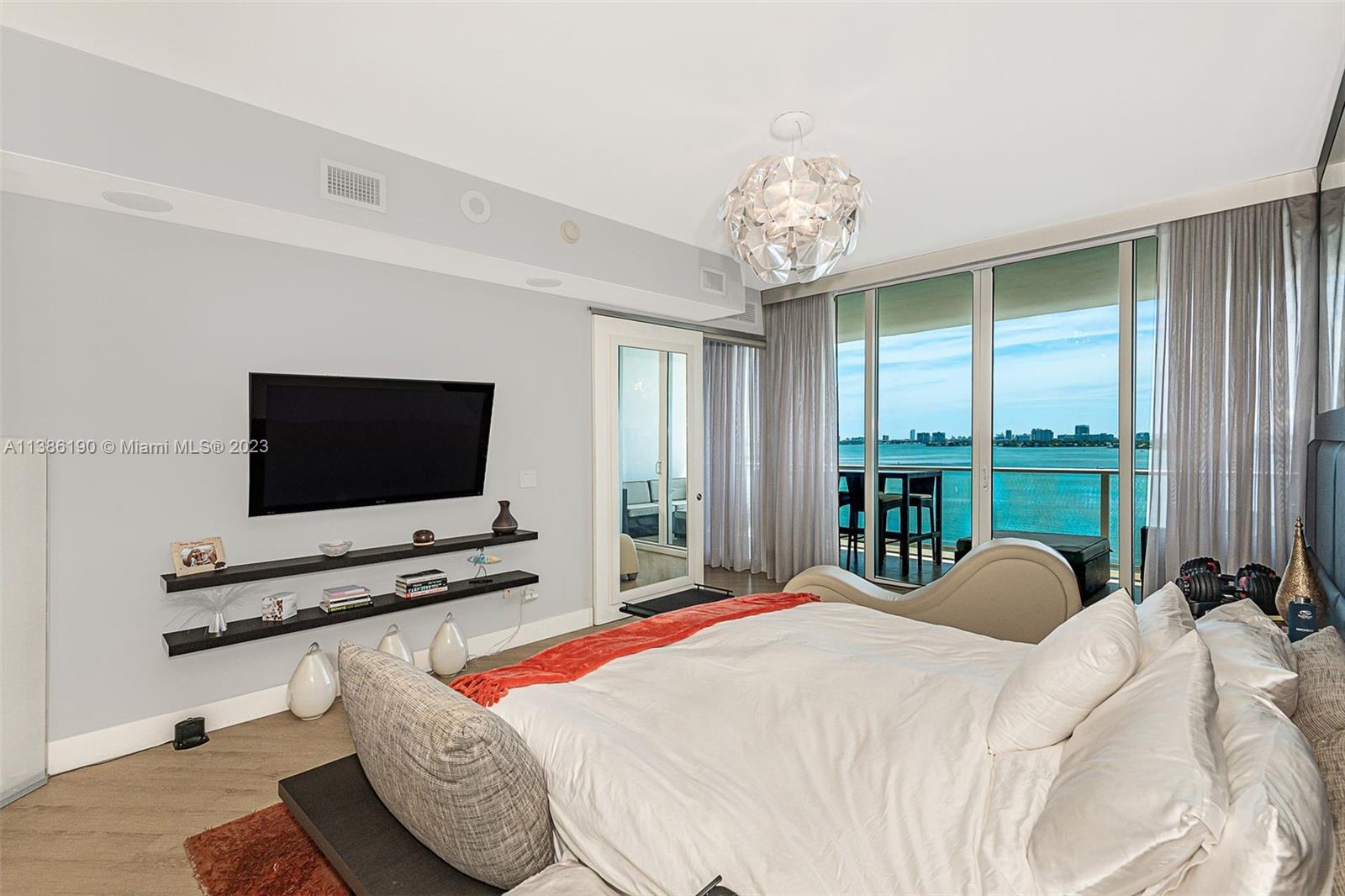 Spectacular flow through Smart Home in one of the most desirable buildings in Edgewater. Enjoy unobstructed sunrise bay views from one terrace and sunset city views from the other. 2 Beds, 2.5 Baths + Large Den which can easily convert into a 3rd bedroom. Direct elevator entry to private foyer. Sub-Zero and Wolf appliances, en suite master bathroom, built-in closets, cabinets, and custom light fixtures. Lutron powered lighting throughout the home. In-ceiling speakers in living room and master – even in the shower! Automated blackout shades, drapes, music, lighting and smart thermostat. Full-service resort style amenities including two amazing pools, cabanas, BBQs, gym, spa, Pilates room. Enjoy social events in the club room and numerous gathering spaces designed by Lenny Kravitz.