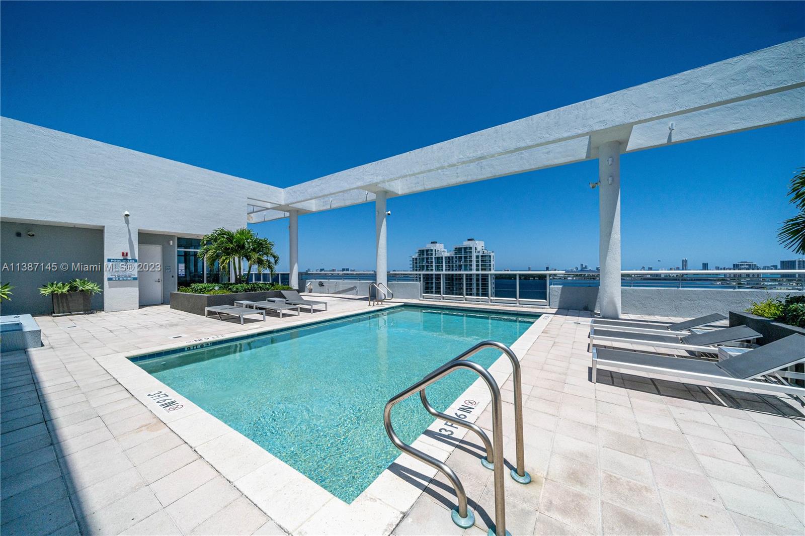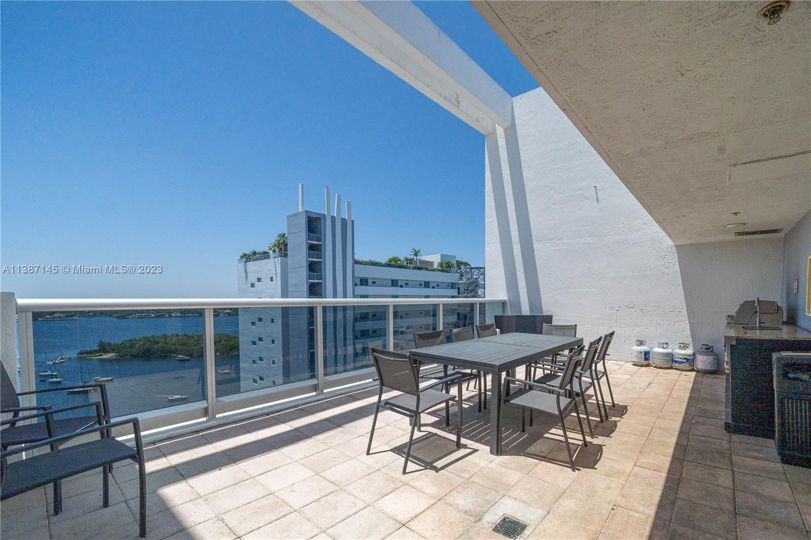 This stunning 3 bed, 2.5 bath corner condo boasts over 1760 sq ft with incredible natural light and unobstructed water views from every room. The large master suite features a luxury bath with separate jacuzzi tub. There are 3 real well-proportioned bedrooms with ample closet space. The floor plan has been thoughtfully designed to create a really comfortable and inviting living space. The open living area seamlessly connects to a large balcony, perfect for outdoor furniture. Building amenities include a rooftop pool, gym, club room, BBQ area, only 34 units for privacy and exclusivity. Boat owners can lease or purchase available boat docks with newly installed dock utilities. Located in North Bay Village, known for stunning water views, a great location, 3D Virtual Tour available.