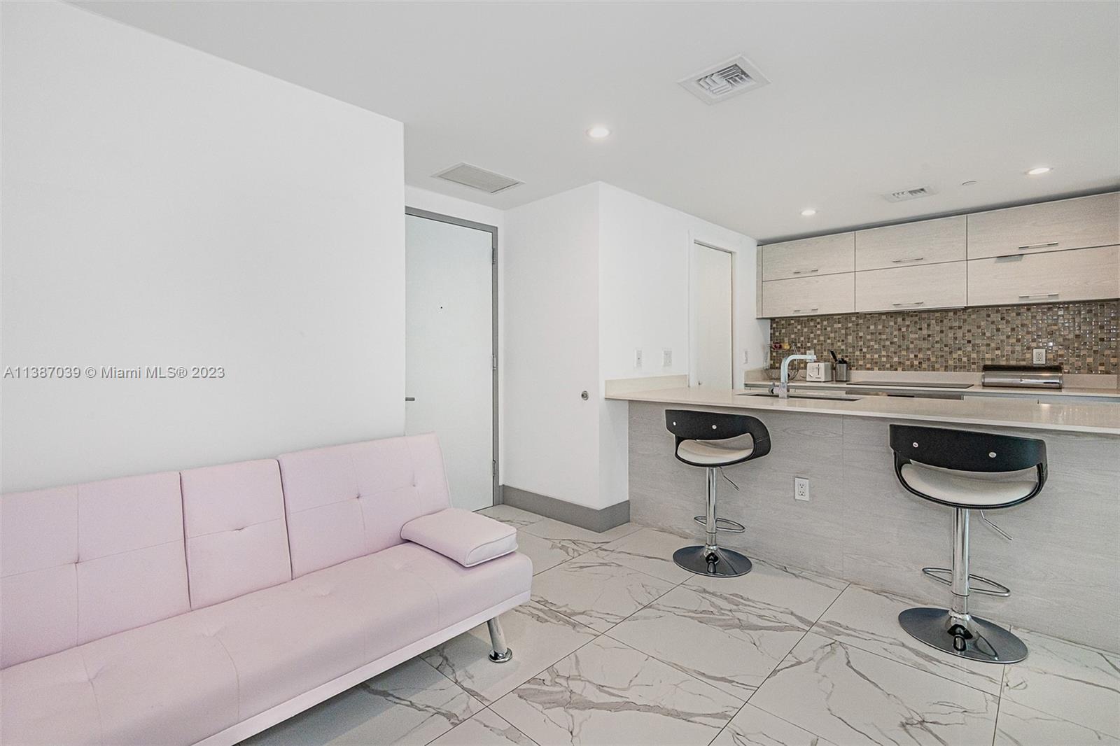 Gorgeous 1 Bed+ 1 bath plus Den at luxurious 5-star SLS Brickell Residences. Large open balcony over looks beautiful city & bay views. Fully upgraded, elegant flooring, custom-built extended closet, Bosch/ Subzero appliances. Assigned parking space also included. Experience Resort-Style living, First Class concierge services & Hotel amenities (multiple pools with pool bar, private cabanas, fitness center, spa, movie theater). Restaurants, entertainment, and shopping located nearby in this great Brickell neighborhood. Short-term rental allowed 3 times a year. *Option to purchase UNFURNISHED OR FURNISHED/EQUIPPED.*