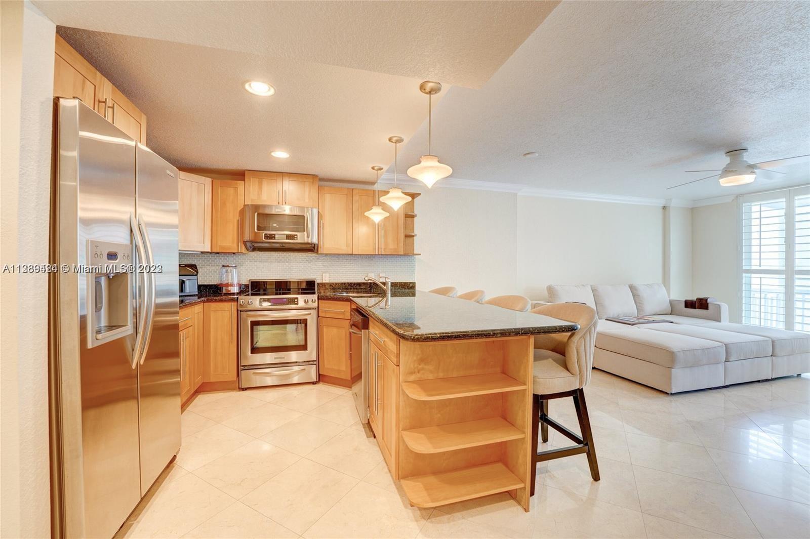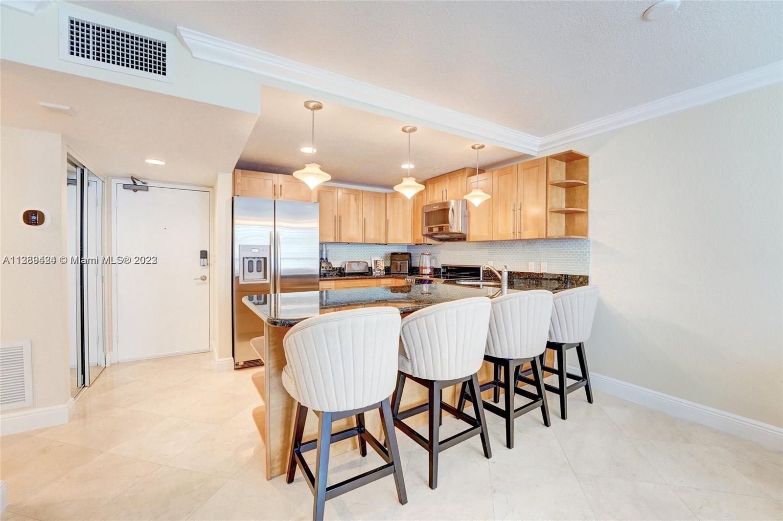 South Beach Oceanfront Living. This home has Southern exposure with breathtaking sunsets and direct ocean views. Completely renovated with an open concept kitchen including stainless-steel appliances, refrigerator, microwave, convection oven, dishwasher, and washer/dryer in unit. State-of-the-art smart home using Alexis and Siri on a smartphone for remote access for front door video access and lock, all lighting, and thermostat control. Also features a five-foot wide custom pocket door for direct ocean views from the bedroom, marble floors, custom closet, wood shutters, prewired living room speakers, and all Kohler plumbing fixtures. Beautiful Pool and Sauna. HOA fee includes Cable, High-Speed Internet, water, and trash.