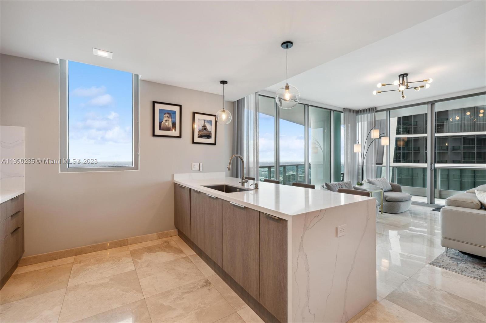 Breathtaking Miami Skyline and water views from this 3 bed/3.5 bath Penthouse in the sky. Property features 24x24 Italian marble floors throughout, formal dining, private bath and balcony in each room, state of the art open kitchen with Subzero fridge and Miele appliances and private elevator. This luxury high rise tower offers the comforts of an amazing Spa and many other on site amenities including a fitness center, 2 pools and concierge service. Unit. Easy to show