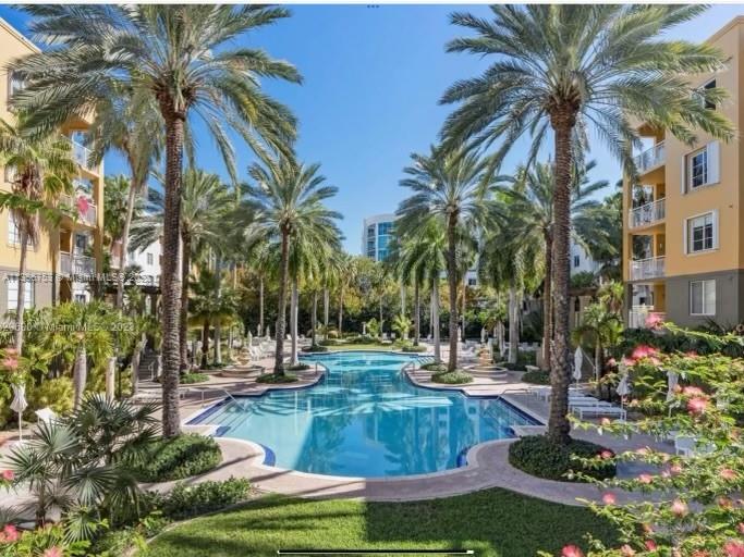 This spacious corner unit offers 2 bedrooms plus a den and 2 full baths, providing ample space for comfortable living. Step inside and be greeted by a cozy balcony, perfect for enjoying the beautiful Miami weather. The layout of this unit is thoughtfully designed, ensuring both functionality and comfort. The Courts is a family-friendly complex that boasts two pools; creating a refreshing oasis for residents to unwind, a party room, spa and state of the art Gym. Located in the East facing corner of the complex so there is wonderful light in all rooms and a quiet atmosphere. Unit comes with 2 assigned parking spaces and a storage unit. Don't miss the opportunity to be part of this exceptional community.
