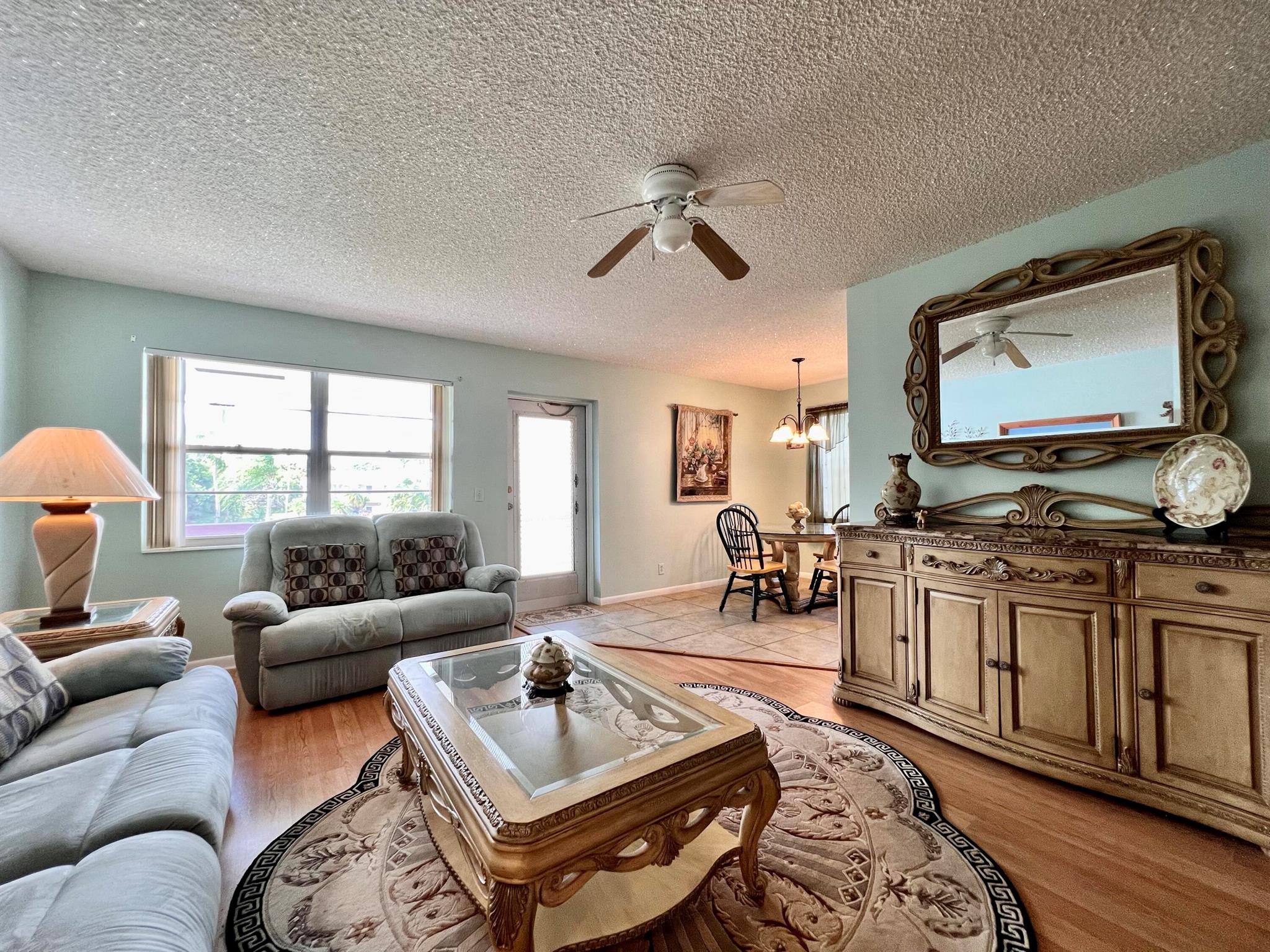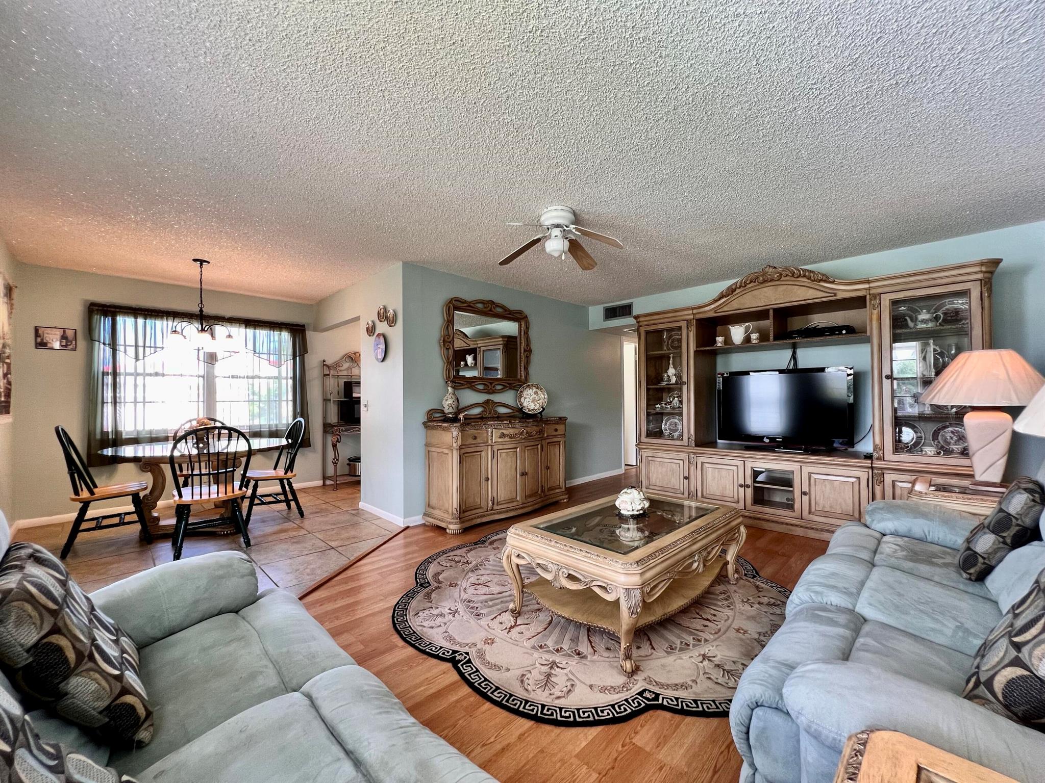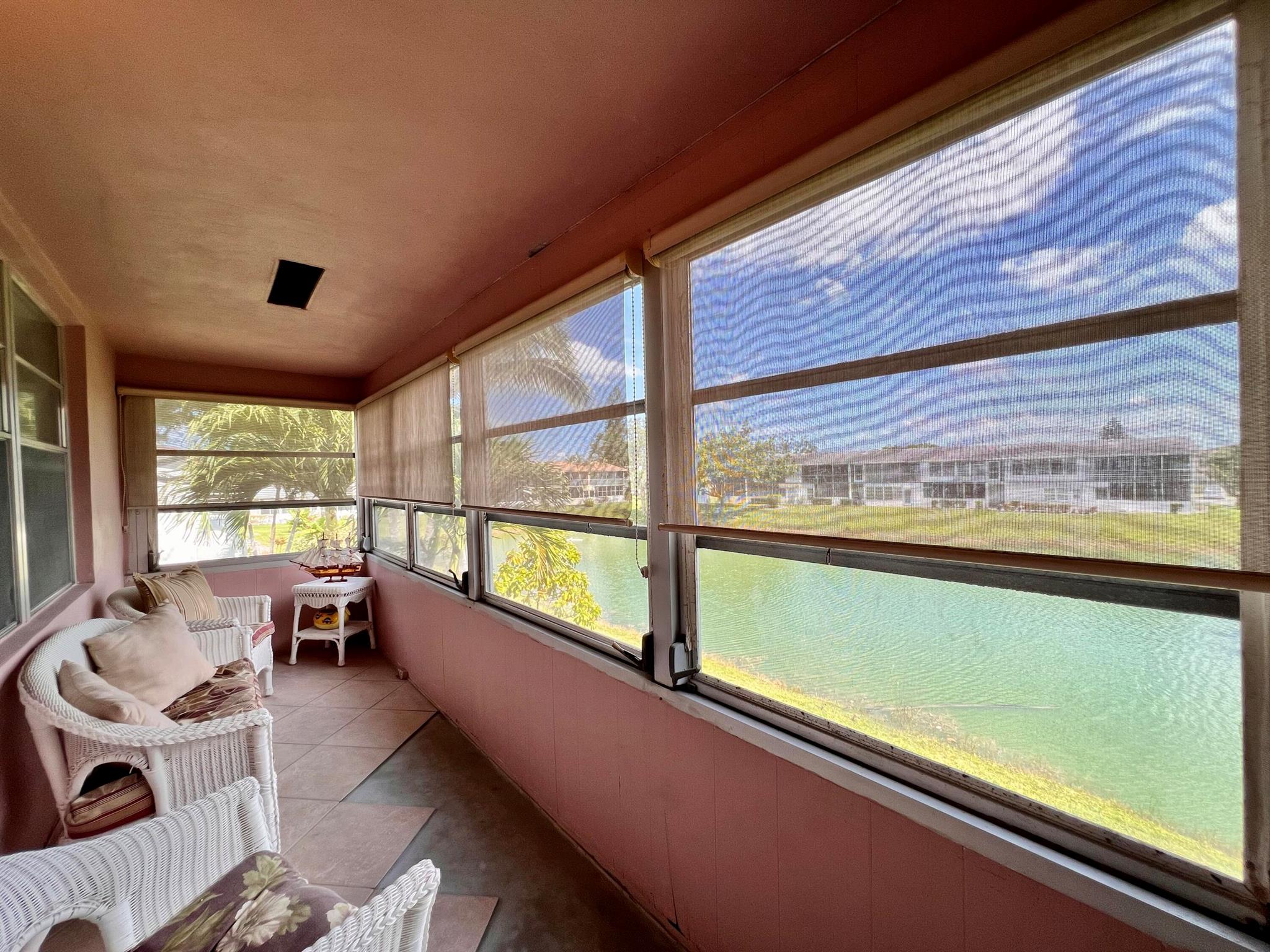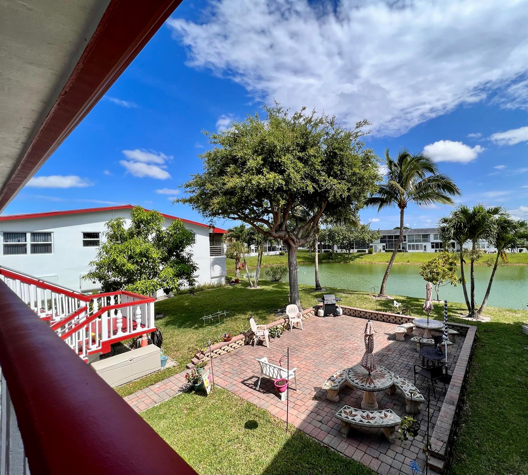 Lovely CORNER Water View 2/1.5 Condo in 55+ Century Village! Nicely maintained condo with central ac. Bright kitchen with newer white appliances and tile flooring. Gracious living area with wood look laminate flooring. Pretty water views from the enclosed lanai. Sold as is and furnished with all furniture & contents as shown. Century Village is a 55+ community with so much to offer...