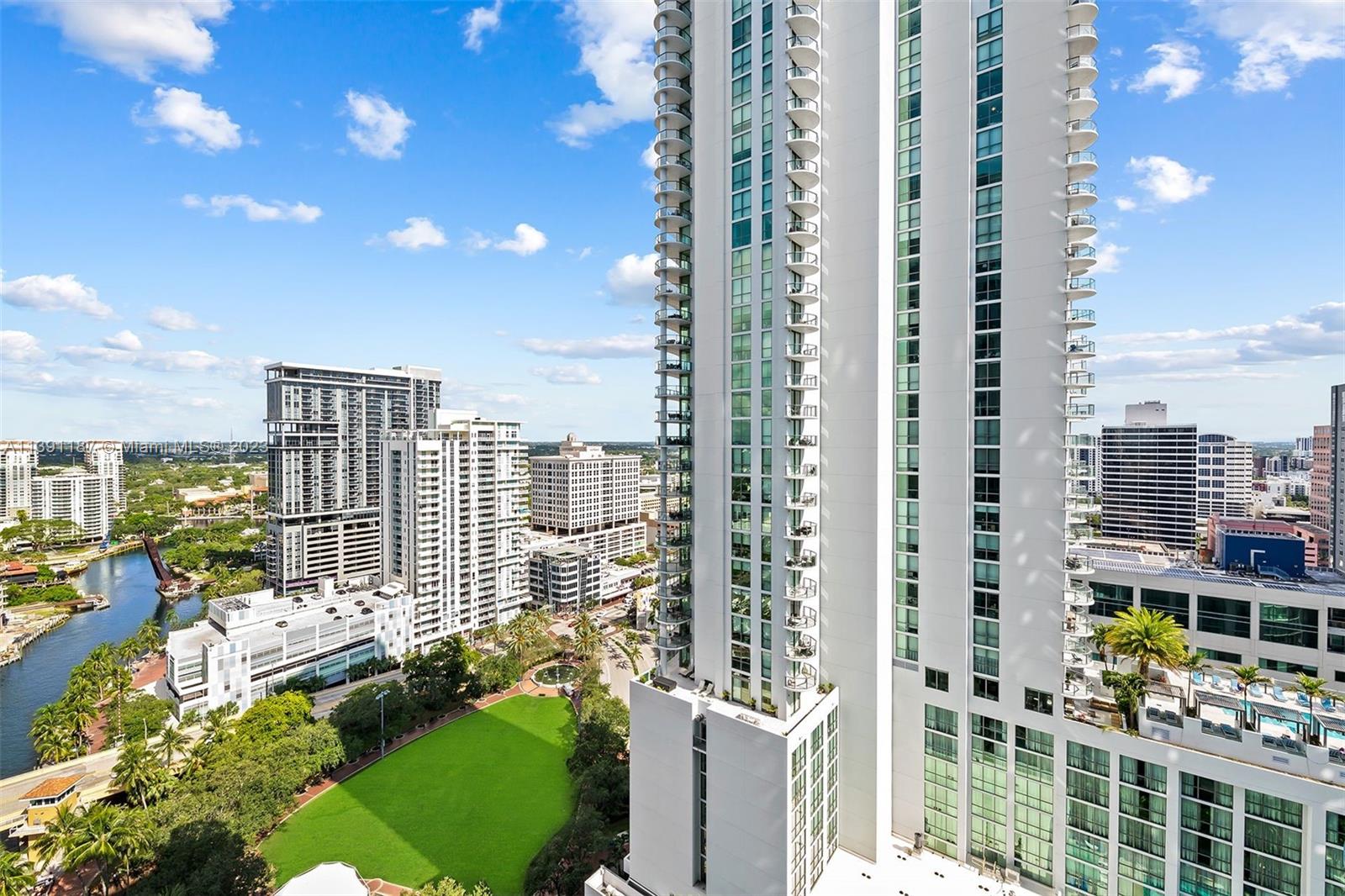 Sophisticated Columbus 2 bedrooms, 3 full baths + den can be used for a 3rd sleeping area in Las Olas River House, Ft Lauderdale's landmark tower. With over 2400 sq ft this large flow thru design has private elevator foyer, floor to ceiling glass, split en-suit bedrooms & 2 balconies. Living room drapes excluded. On the banks of the vibrant New River in the heart of downtown & famous Las Olas Blvd. Walkable urban life at its best! Building is financially sound and is pet friendly. Owners are allowed to rent with no holding period. Fully funded 4M lobby renovation just completed by award winning Steven G. New Hyatt Hotel, Eddie V's Prime Seafood, Moxies & Green Wise Grocery just steps away. Top-tier amenities: grand lobby with Koi Pond, world class fitness center & sunny tropical pool deck