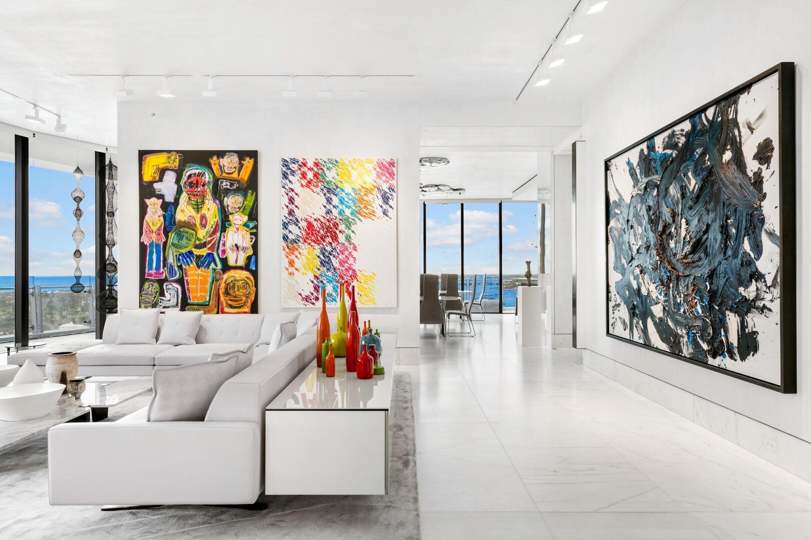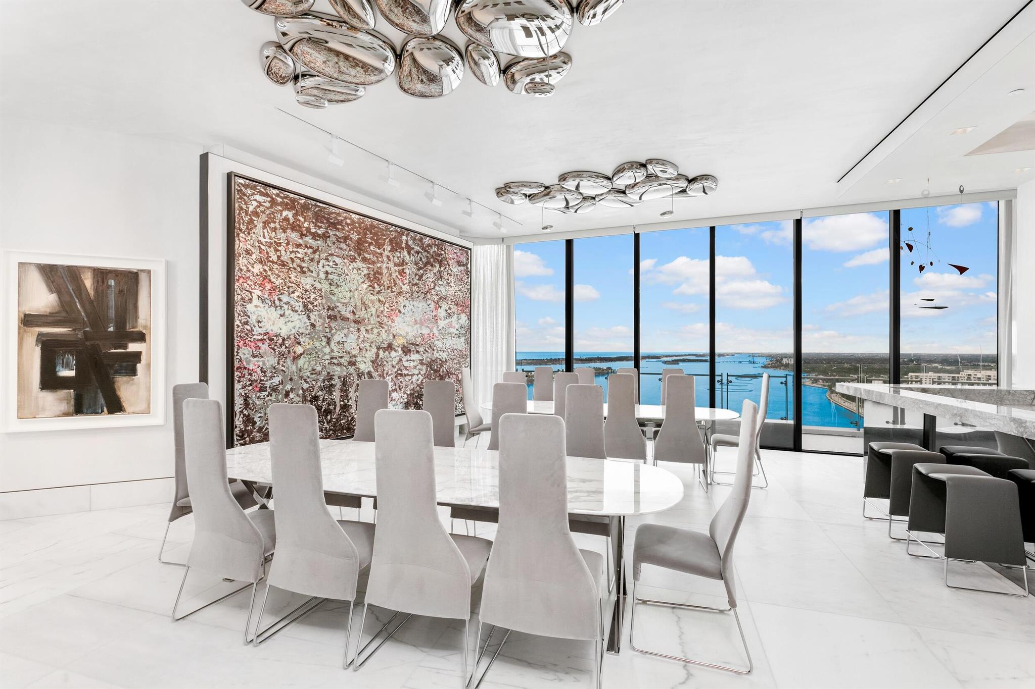Spectacular Ocean, Intracoastal, and City views from this rarely available Penthouse at The Bristol. Perfect for entertaining with 12,000+/- total square footage, oversized living room and dining room with large wet bar. Gourmet chef's kitchen with second catering kitchen for events. 6 bedrooms, 7 baths, 2 powder rooms, home office, and family room. Waterfront owner's suite with gorgeous views and enormous closet. Top-of-the-line building with resort-style pool, gym, dog park, valet, full-time manager, spa, conference room, and lounge.