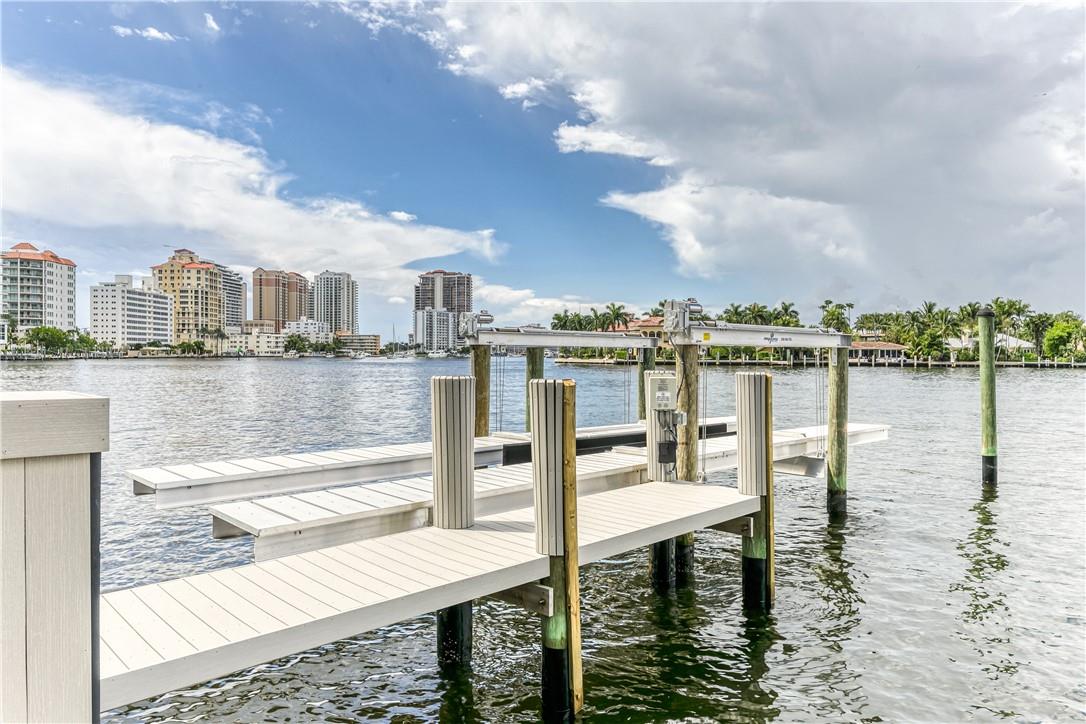 New boat lift (24,000 lbs) 40'x12' boat slip & pool side Cabana. Luxury boutique bldg 31 residences. Flow through unit, 3 bedrooms, ensuite baths, den/office, half bath, 2 terraces, & summer kitchen, flat screen tv, grill, refrigerator, sink, & ice machine on sunset terrace. Custom designed lighting throughout, electric shades, high impact glass, & continuous sound system throughout. Gaggenau GAS cooktop, oven, refrigerator, wine cooler & Bosch dishwasher, Scavolini Italian cabinets & quartz counter tops. Amenities: rooftop pool, with ocean views, sunset pool & private marina, flow through lobby designed by Steven G, state of the art gym & more. 2 garage spaces & 2 pets ok. Close to beach & restaurants.