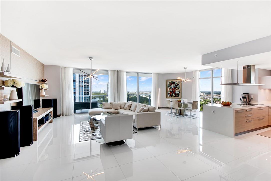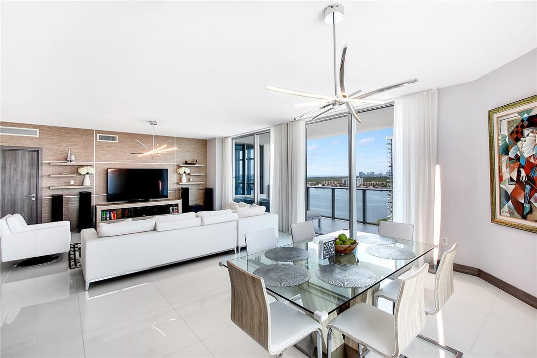 Modern design decorated and furnished residence at Marina Palms North building. South corner with intracoastal, marina and ocean views. 2156 sq feet spacious two bedroom with den or third bedroom. Features white porcelain floors, open gourmet kitchen with wolf appliances, sub zero refrigerator, large marble bathrooms, huge balcony, custom closets, custom window treatments and built ins. The complex of Marina Palms offers the best amenities, full service marina, amazing pool deck on the bay, state of the art gym, concierge, kids and teen centers, 24- hour gated security and surveillance, extra storage space.