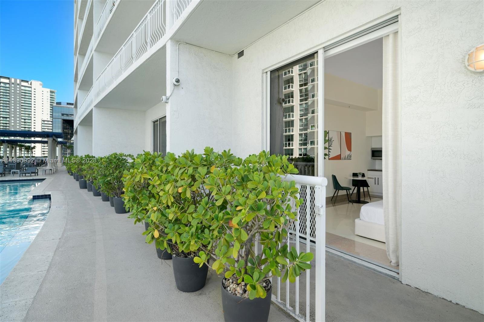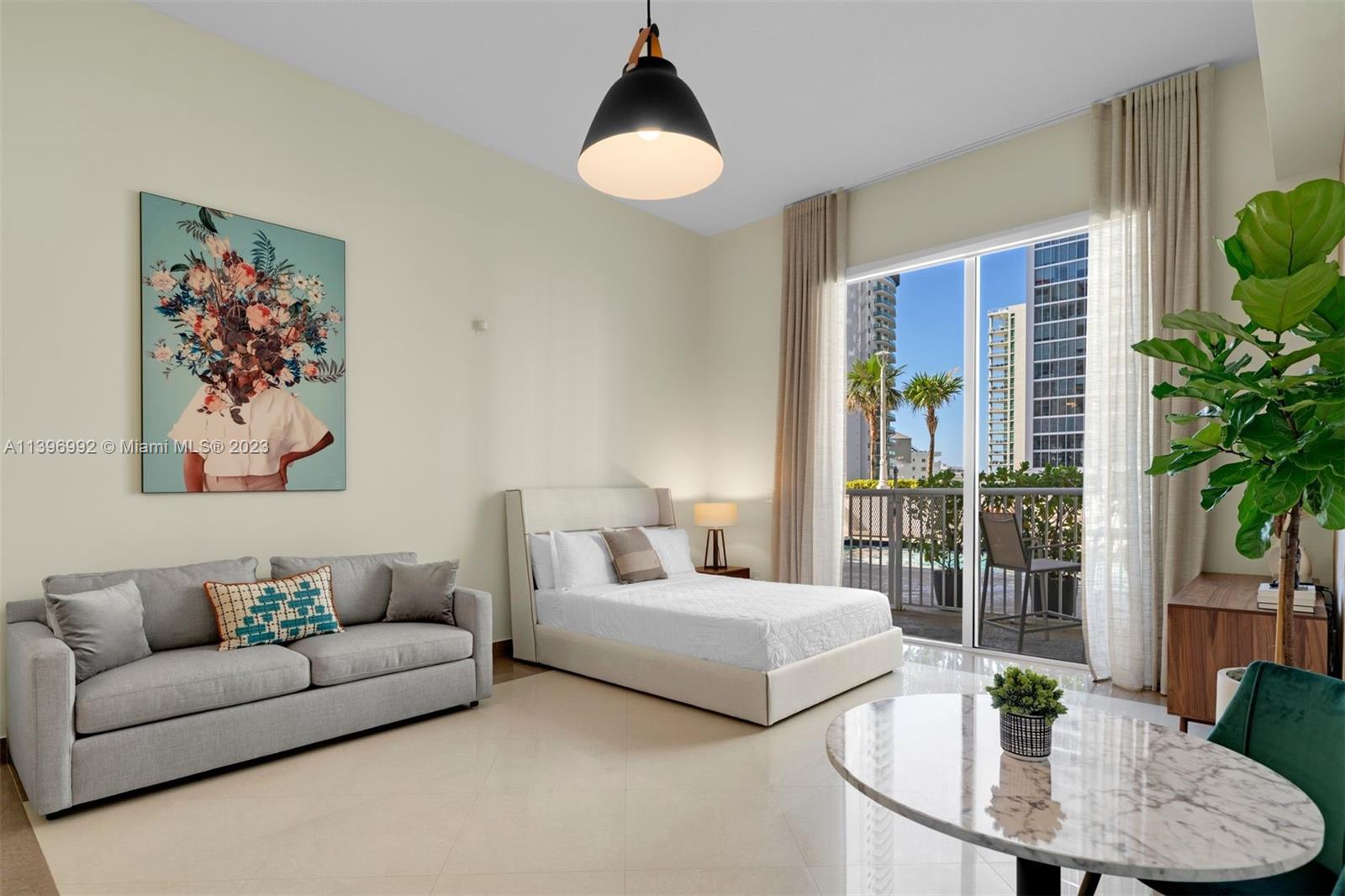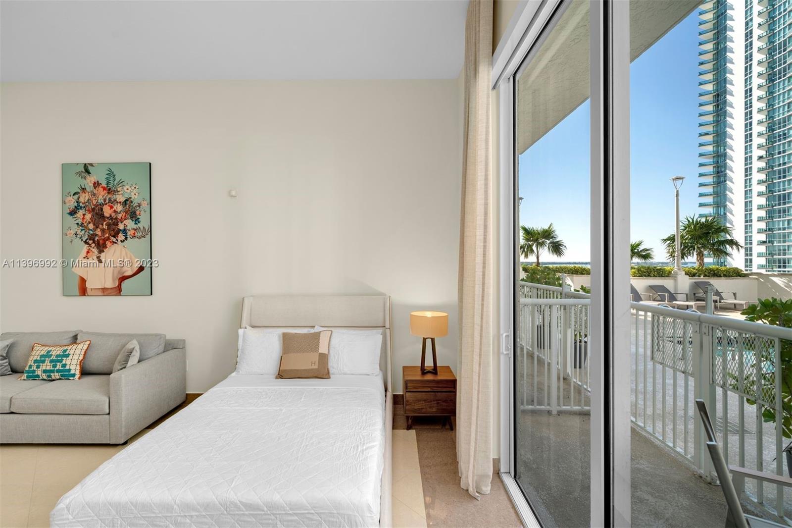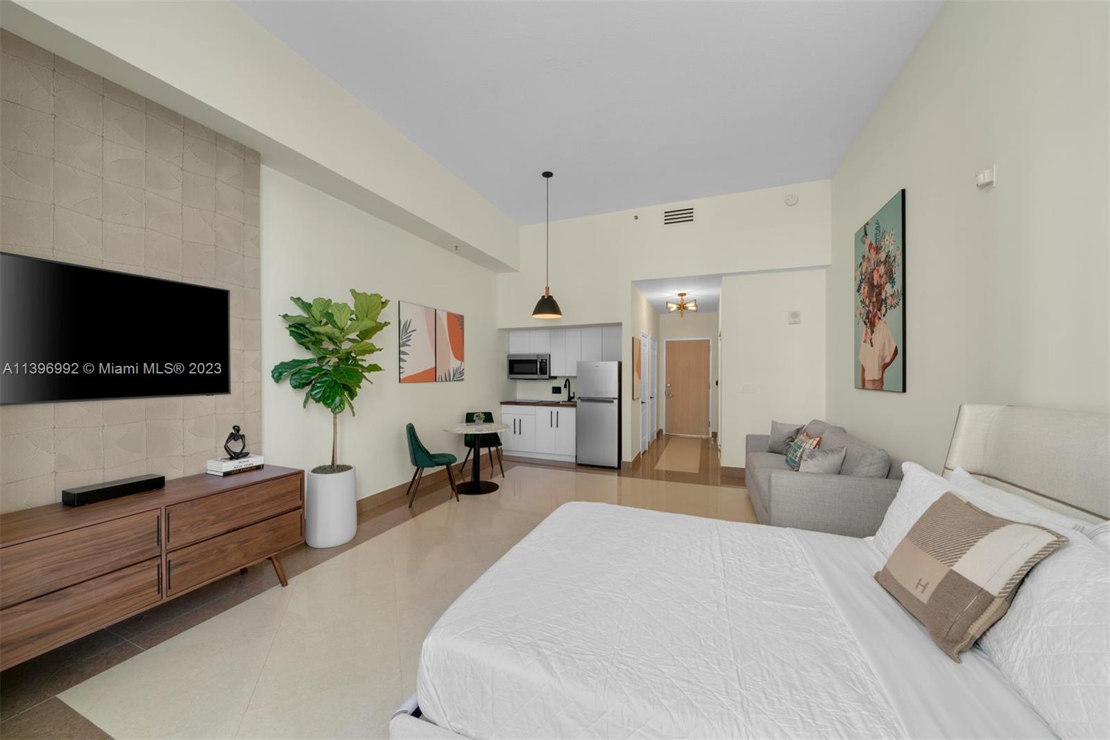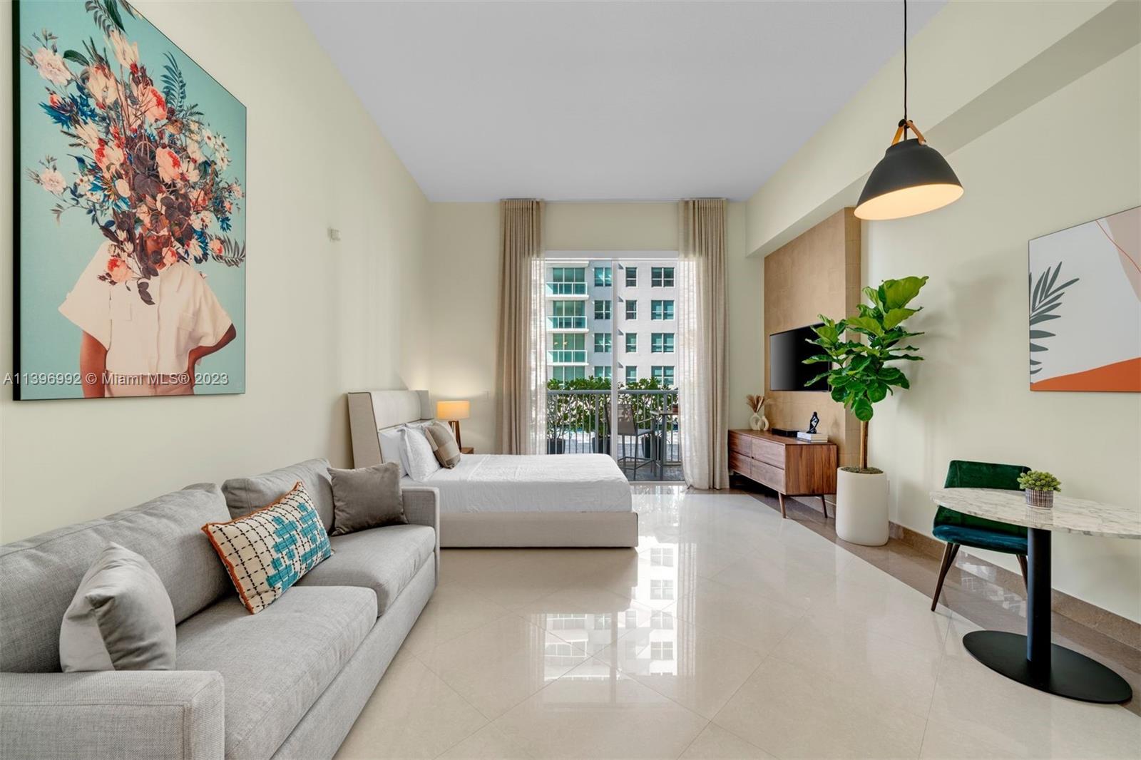 Welcome to this Completely Renovated, One-of-a-Kind studio with 12FT ceilings, designed to provide the ultimate Airbnb-friendly experience. This residence offers direct access to the pool area, ensuring a seamless transition between indoor and outdoor living. Step into a space that has been meticulously Furnished and Decorated, aimed at maximizing your daily rental potential. This property boasts a remarkably low maintenance fee of $361. Every detail has been carefully considered. Close and start generating income immediately. New kitchen & bathroom, tile floors, new plumbing, light fixtures with Lutron, motorized black out shades with new drapery and wallpaper. New fridge & cooktop. Too many upgrades to list. No expense has been spared in creating this exceptional space. Won't last.
