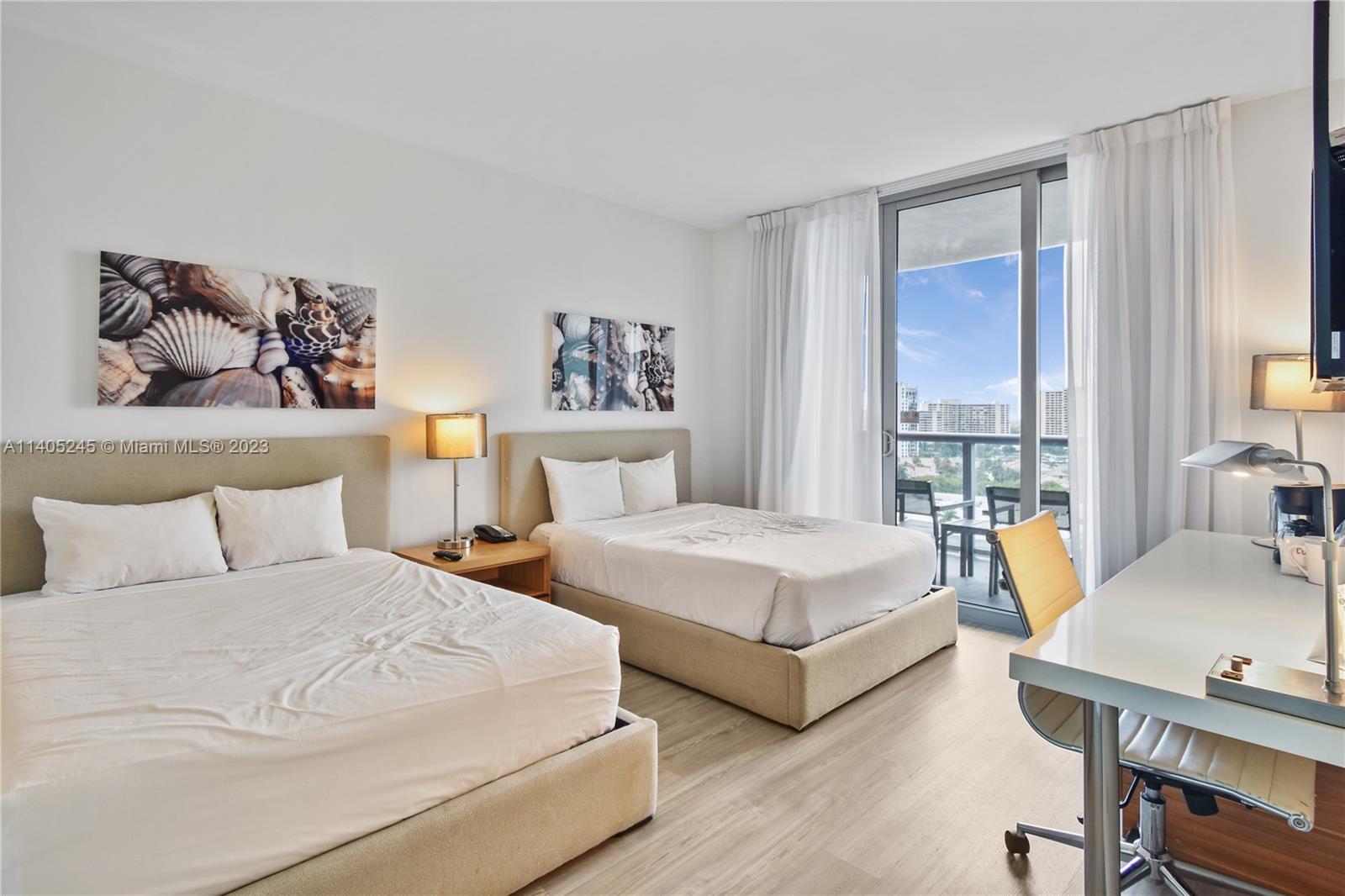 Turnkey investment opportunity! Fully furnished 2 bedroom/2 bath unit is able to be rented as two separate units (1 bed, 1 bath & studio w/bath), allowing you to maximize occupancy and rental income. The unit is located on the 15th floor with incredible south-facing views of the Intracoastal. Modern finishes, stainless steel appliances, floor to ceiling windows and large balcony in each unit. One-bedroom has washer and dryer in unit. No rent restrictions - short-term rentals available and can be managed by the hotel, Airbnb or other management company. Amenities include community pool, owners-only rooftop pool & lounge, 24 hour Fitness Gym and shuttle to/from the beach. Located in the heart of Hallandale Beach with access to great restaurants, beach and nightlife.