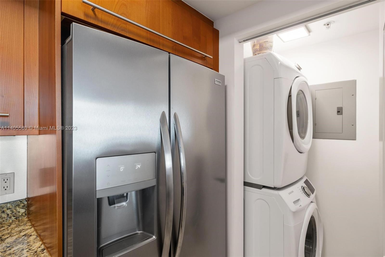 Beautiful one bedroom at The Cosmopolitan with serene views. Unit comes with 1 assigned parking space, valet, air conditioned storage on the same level as the unit, w/d in the unit, marble floors, granite counter-tops, s/s appliances. Amenities include:bicycle storage, 24h security, management on-site, security cameras, fitness center, sauna, jacuzzi, pool table & party room. Enjoy the best Sough of Fifth has to offer: Short distance to the beach, South Pointe park, Ocean Drive, Publix, shopping on 5th, easy access to MacArthur Causeway. Call LA for showings