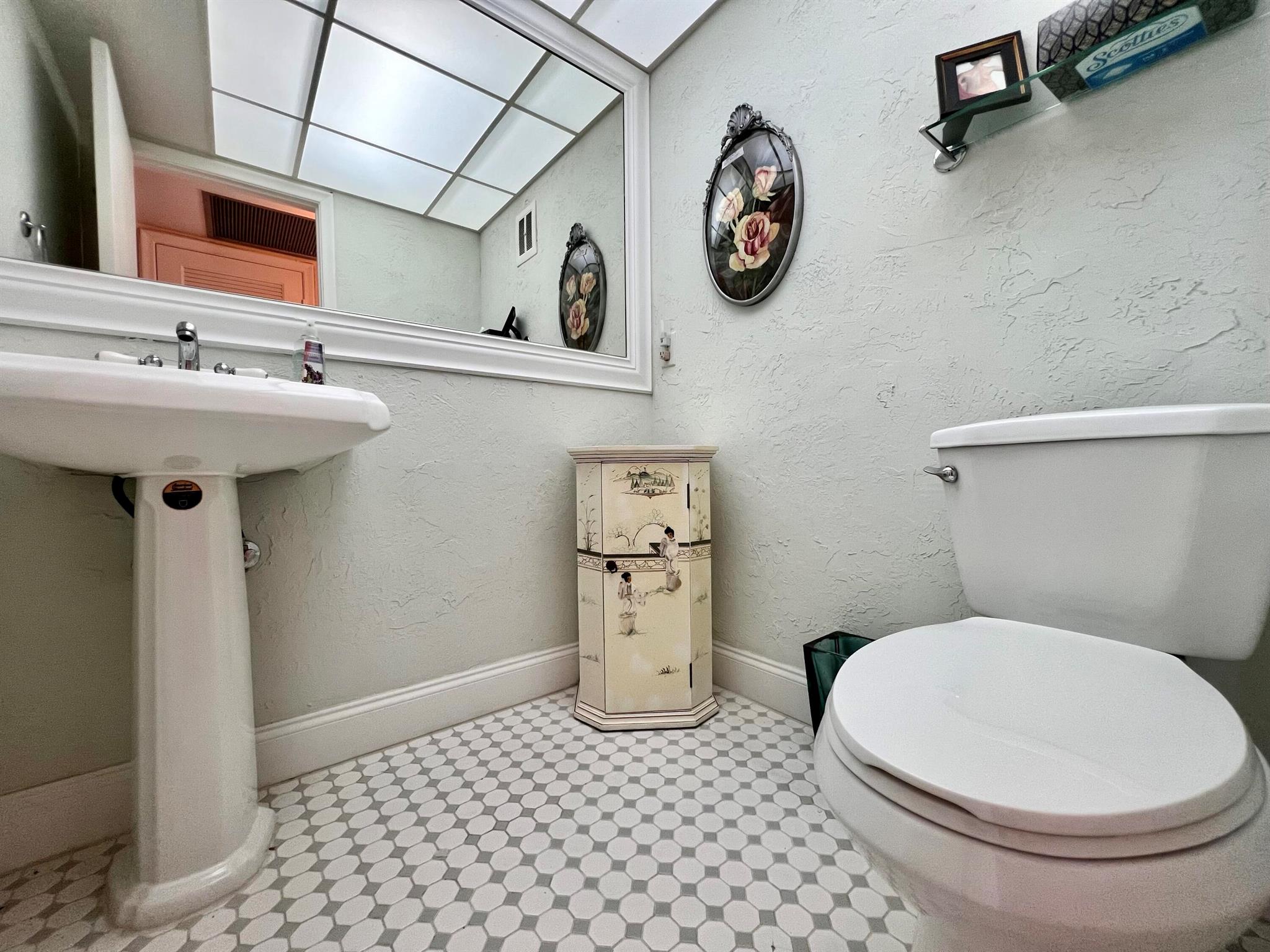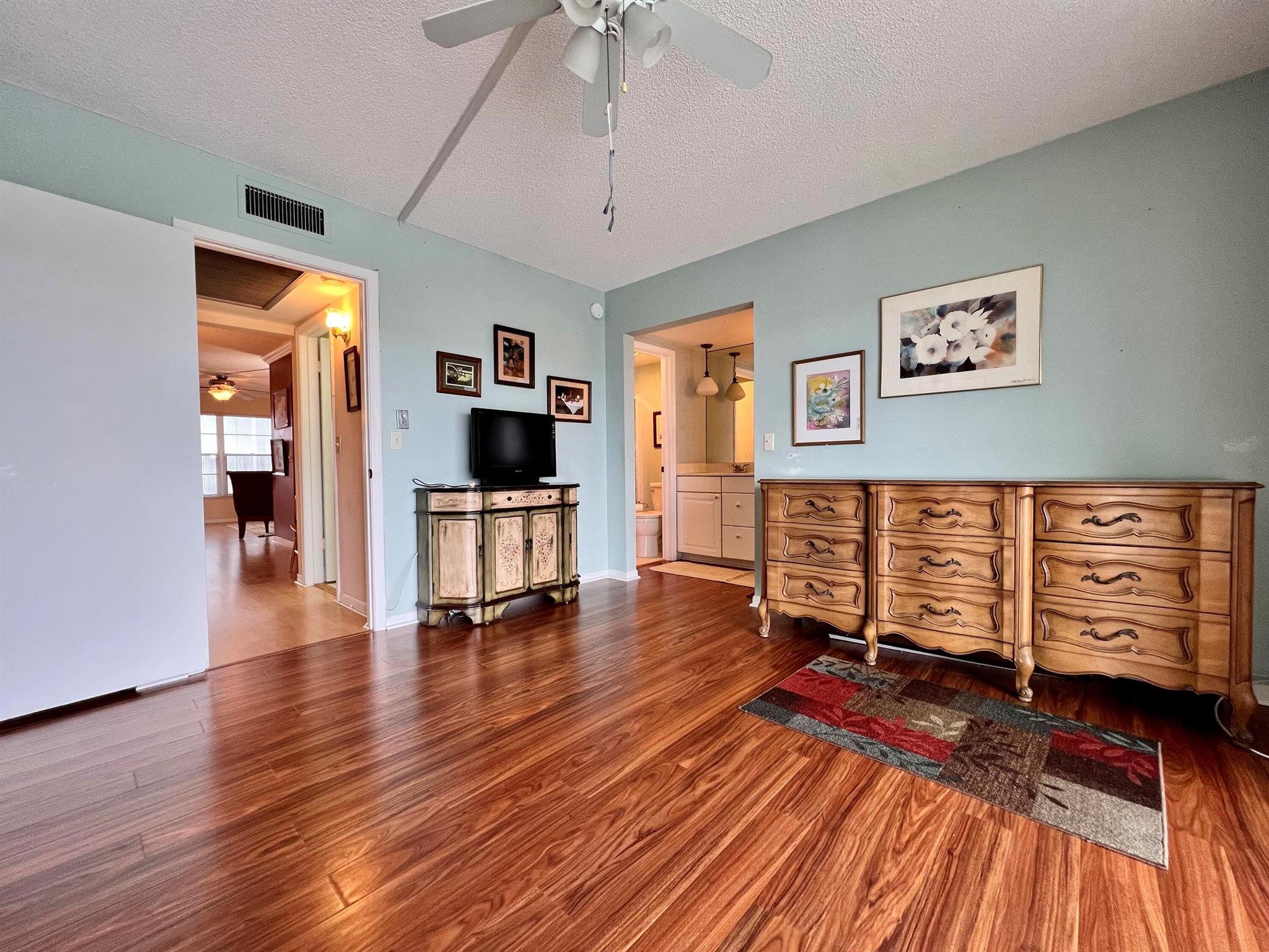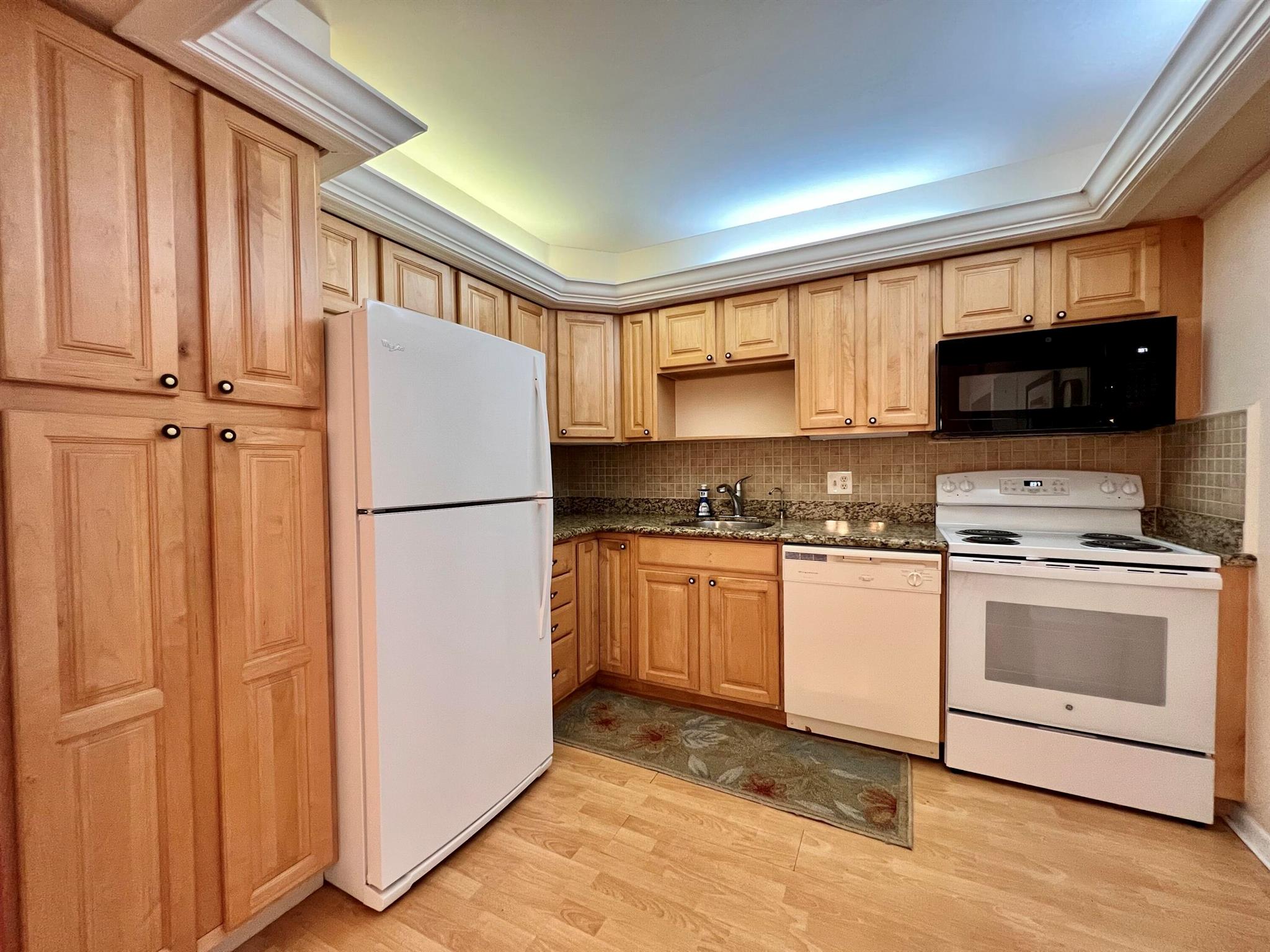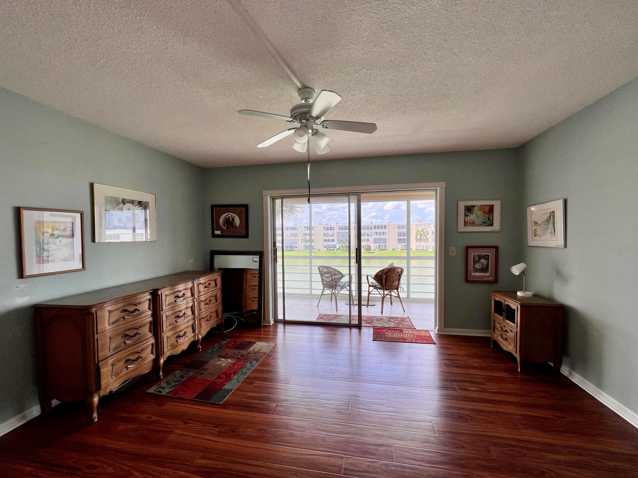 Delightful With Pretty Water Views & Updates In The Desirable Wellington Section of 55+ Century Village! Spacious 1/1.5 with updated kitchen featuring natural cabinetry, granite counters, and updated appliances (brand new never used range). Updated wood look laminate flooring throughout. Pretty crown moulding in living area. Updated half bath. Large bedroom suite with water views, full ensuite bath, two closets (one is a huge walk-in), and access to the lanai. The lanai offers extra space and pretty views! Wonderful location and well-maintained building. Sold AS IS and furnished as shown (excluding personal items). Century Village is a 55+ community with so much to offer