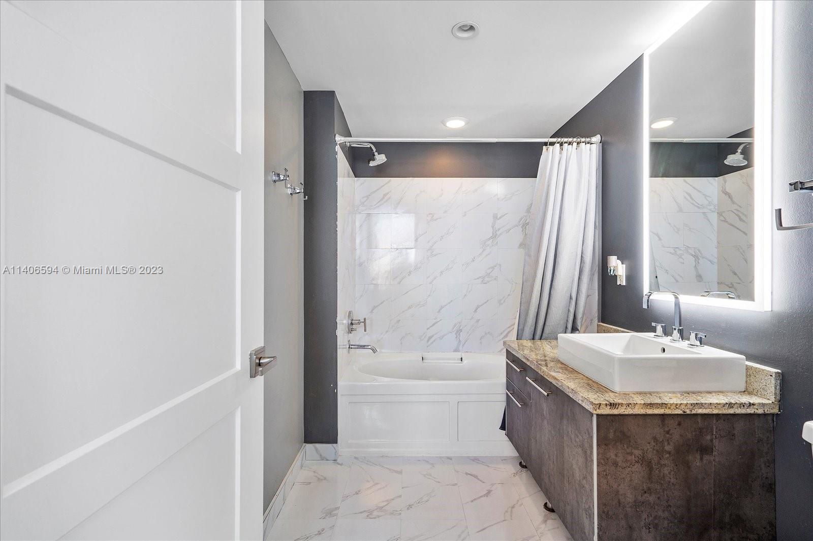 Incredible views from this 34th floor stunning unit in the heart of Brickell. Unit features all new doors, new front load washer and dryer, new dish washer and microwave, new stove top, new garbage disposal, new faucets, new bathroom mirrors with LED lights around the trim and all new light fixtures! Walking distance to shops, restaurants, and nearby access to the highway, this 1 bedroom plus den features stainless steel appliances, granite counter tops and is immaculately maintained. Wifi and basic cable included in maintenance fee along with use of the stunning amenities: 2 story gym, movie theater, resort style pool, sauna and more. 24 hour front desk, security and valet.