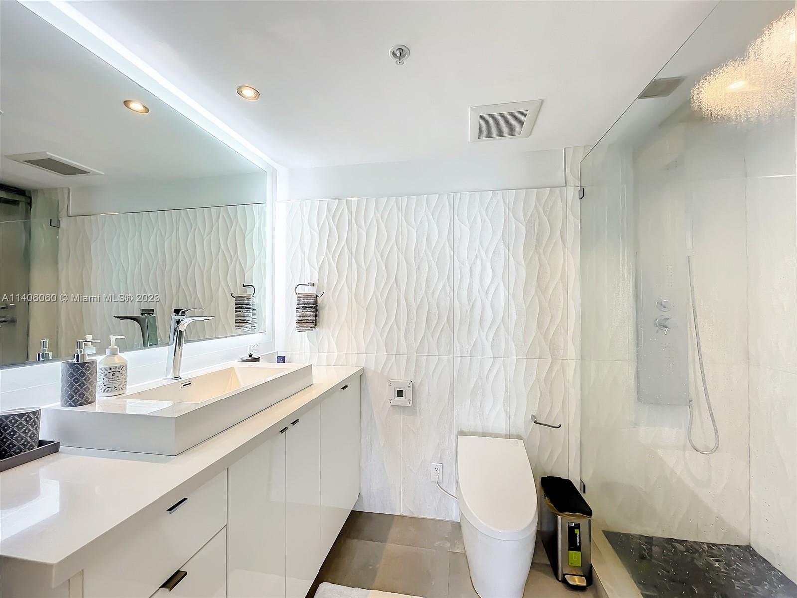 Beautifully finished condo with high end fittings and appliances. Outstanding kitchen - equipped with Bosch appliances, Quartz countertops, Pantry and a Breakfast Nook; Upgraded Bathrooms with Toto toilets and Porcelanosa designer tiles. Enjoy superior entertainment from the comfort of your home with a 75" TV and Surround Sound Speakers. Experience stunning sunrises from the wrap around balcony with views of the Bay and beyond. This is a must see!! Conveniently located with walking distance to Brickell City Center, Fine dining, Miami-Dade Arena, Metro mover and Bayfront Park. One Miami offers - 24/7 Concierge; Valet Service; Fitness Center; Pool & Sauna. One assigned parking and one valet parking.