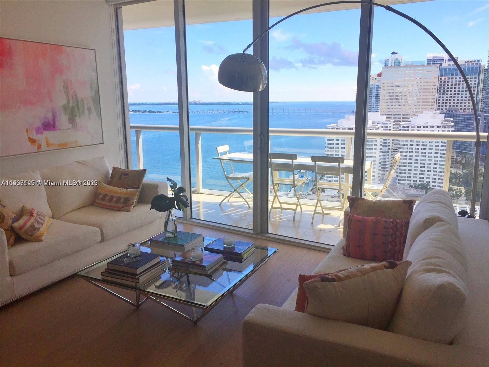 ICON Brickell is the pinnacle of style & class in Brickell and unit #2403 exemplifies that. Spectacular Southern exposure delivers incredible water and skyline views over the Bay, the Miami River and all of Miami's nightlights. The floorplan is perfect, sporting two bedrooms plus an enclosed den currently in use as a third bedroom, chic custom lighting, gleaming hardwood floors, top of the line Bosch, Subzero and Wolf appliances, finished closets and sleek window treatments. ICON Brickell's amenities are unmatched and include the newly remodeled 2-acre pool and hot tub decks, spa and gym overlooking Biscayne Bay with free yoga and exercise classes, private theatre, 24/7 concierge & valet and award-winning restaurants Cantina La Veinte & Cipriani in the lobby. This unit is a cut above.