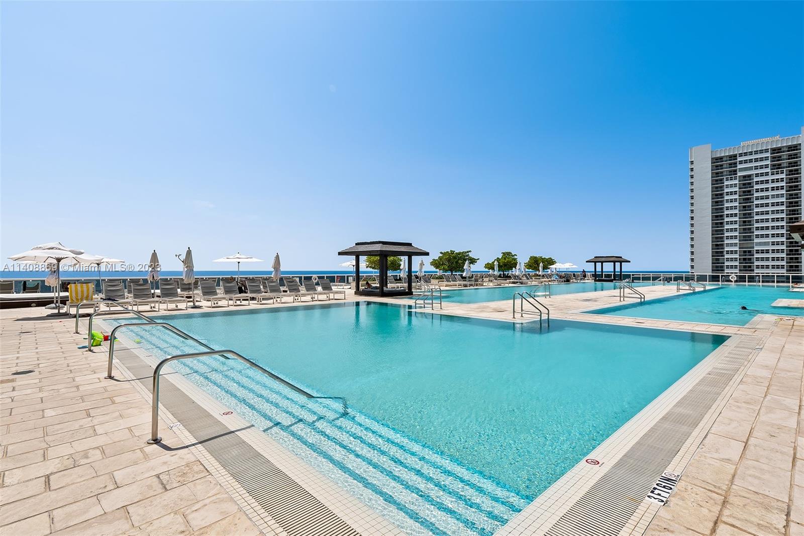 Resort Style Living at its finest! This 2 bedroom 2 bathroom unit is located in Beach Club One and offers world class amenities! This unit features a spacious and open floor plan offering incredible ocean views and plenty of room to entertain. This corner unit is also equipped with both a main balcony in the living room and a large secondary balcony in the master bedroom. Both balconies have great size and offer even better views of the ocean, pool area and city! Owner can use the amenities at Tower 1 and Tower 2 and have access to multiple pool areas, world class gyms and spas, pool area bar and food, and full beach service! Owners are selling a cabana as well (not included in asking price, pictures at the end of listing photos) and the Buyer will have first option to purchase the cabana!