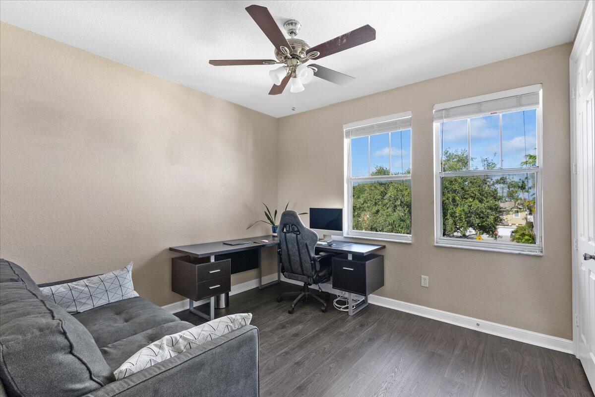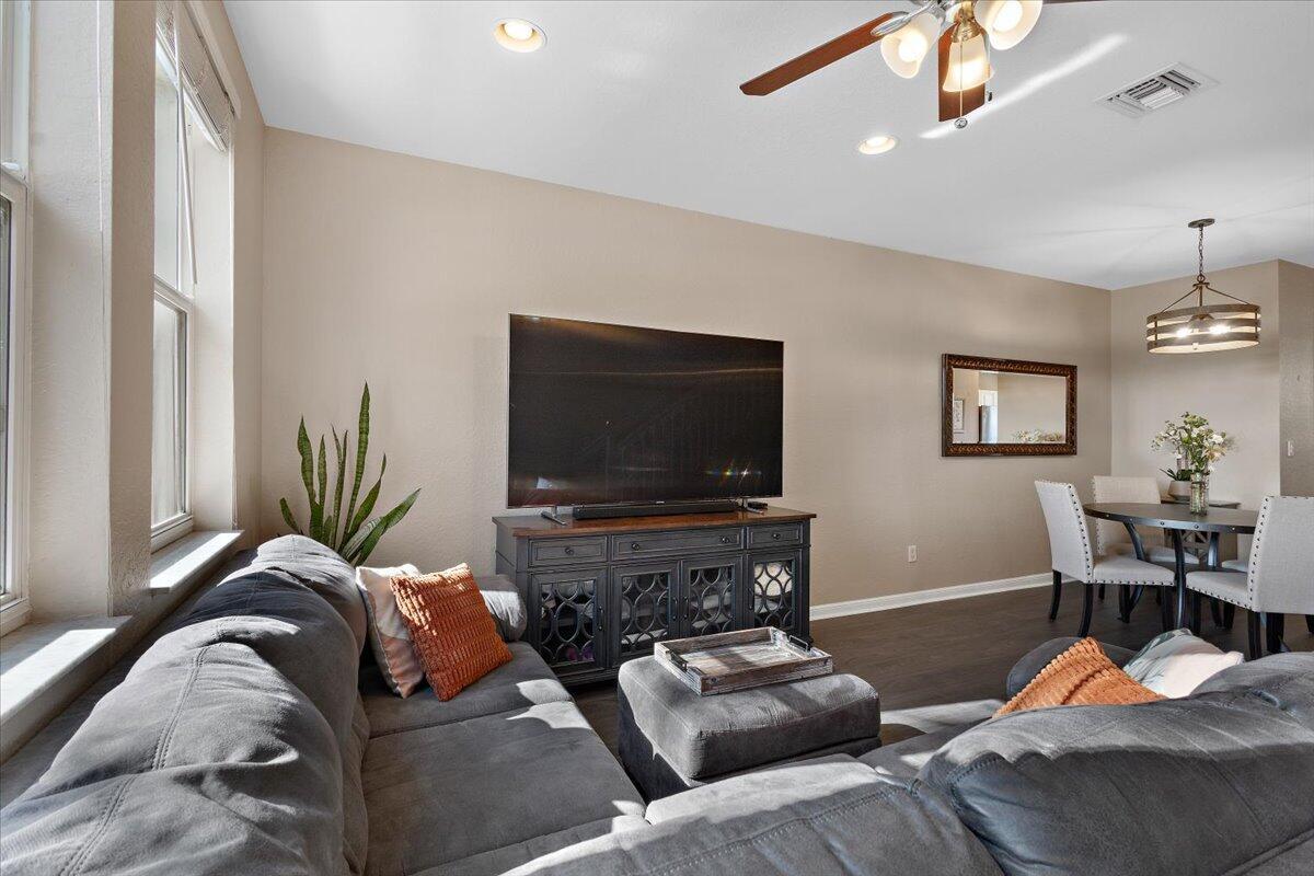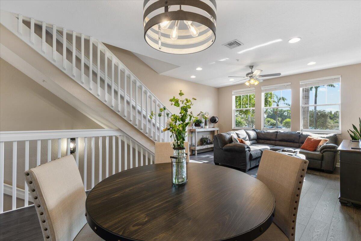 Downtown investor friendly urban dream! Immerse yourself in modern living with this upgraded 2-bed + den/office, 2.5-bath home. Spanning 1448 sqft across 3 stylish stories, it offers a sleek open layout, laminate floors, and smart features throughout. Imagine the convenience and luxury of voice-controlled lights, effortlessly setting the mood for any occasion. Enjoy upgraded community amenities: a gym, lakefront pool, and park-like grounds. The inclusive HOA covers high speed internet, cable, water, & more, with owners only having to pay an electric bill. Ideal location near downtown and Tanger Outlets. With a 1-car garage, pet-friendly atmosphere, relaxed rental rules and exquisite finishes, this condo is the ultimate urban sanctuary.