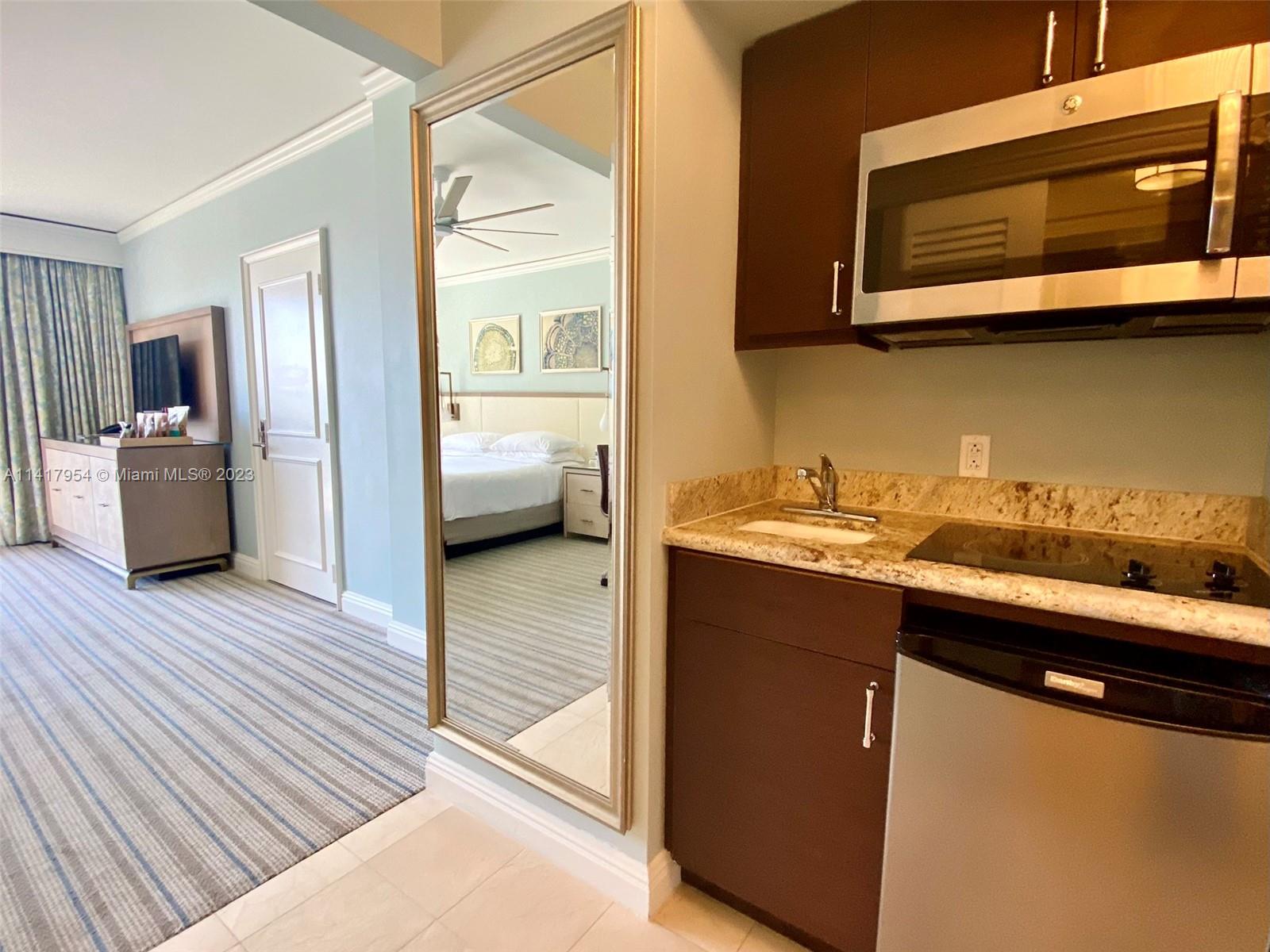 Great opportunity to own a spacious resort view studio at The Ritz-Carlton in Key Biscayne. Drive over the Rickenbacker Causeway for a getaway, yet steps away. Arrive at the hotel, let the Bellman take your bags to your own condo-hotel residence while you check in. “Living at the Ritz” could not get any better. Have a spa treatment, relax at the pool or beach and go eat at one of the hotel's ocean front restaurants. Let the Ladies and Gentlemen of the Ritz-Carlton manage your unit, while you enjoy all of the benefits of owning a piece of this resort hotel. Amenities include concierge service, valet, gym, tennis, spa, pool/beach service, in-room dining, housekeeping and lots more. Stop by the in-house café or go shopping at Sabia Jewelers, 120% linen or Lilly Pulitzer.