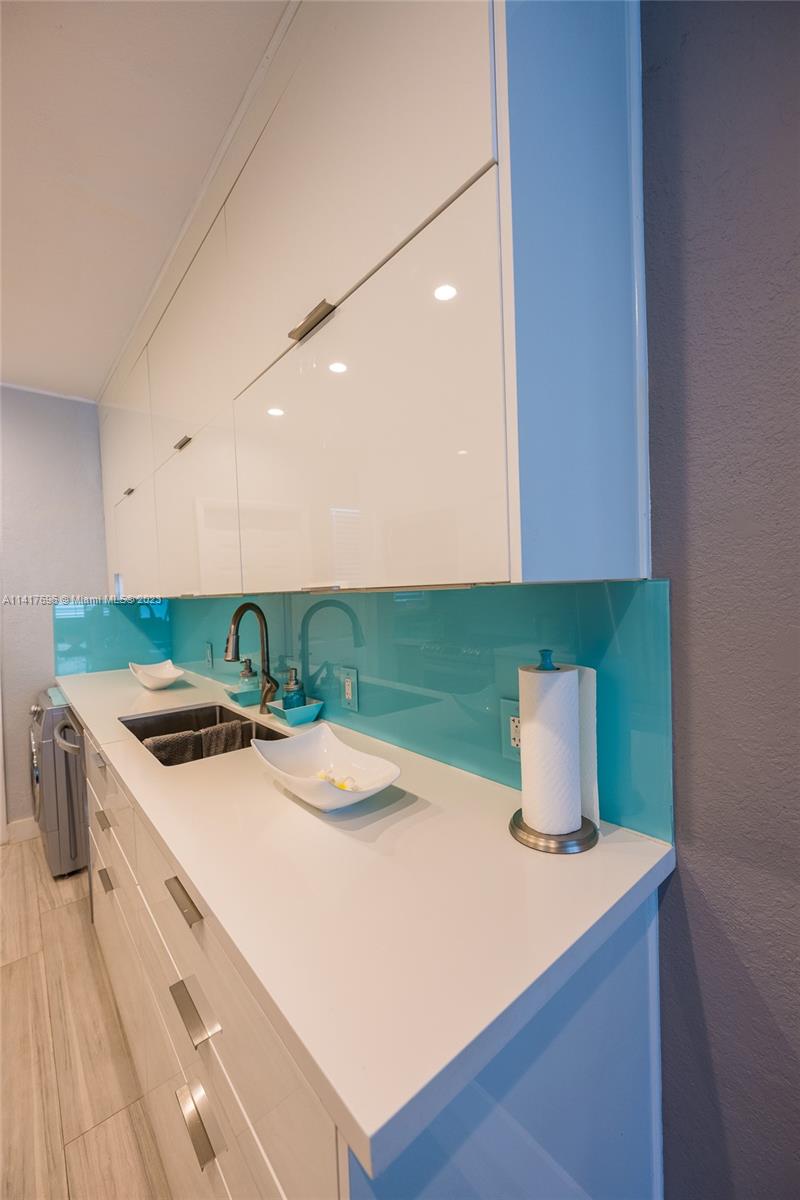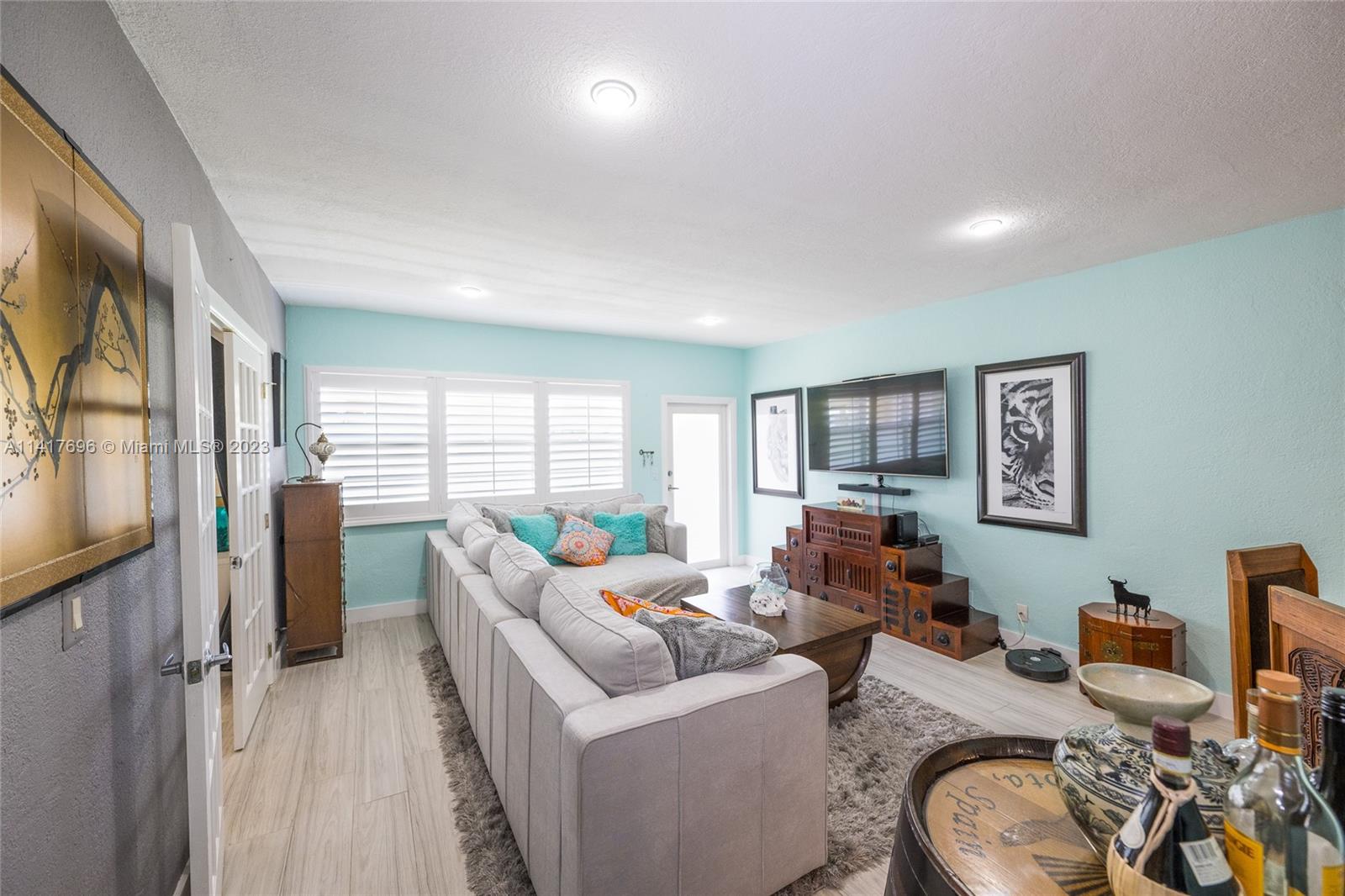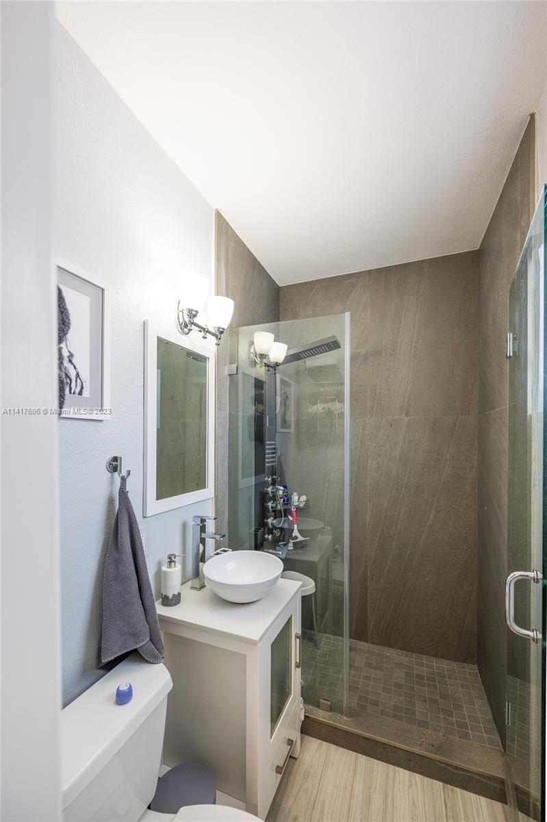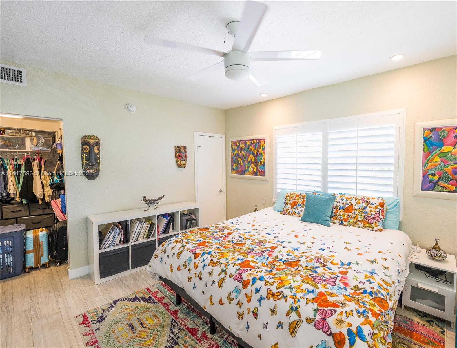 Waterfront corner unit in a 2-storey art deco building for sale in a quiet Normandy Isle neighborhood. This 2 bedroom, 2 bath condo is completely updated with state-of-the-art kitchen and LG appliances, including washer/dryer. Both bathrooms are modern with Shower Panel Tower Systems and rainfall shower heads, and bedrooms are large with plenty of storage room and built-in wall units. The condo has a Spanish porcelain tile floor and white Florida shutters throughout, and the courtyard features a pool, BBQ area and a deck with loungers. Shops, restaurants and churches are within a 7-minute walk and the beach is a 15-minute walk away.