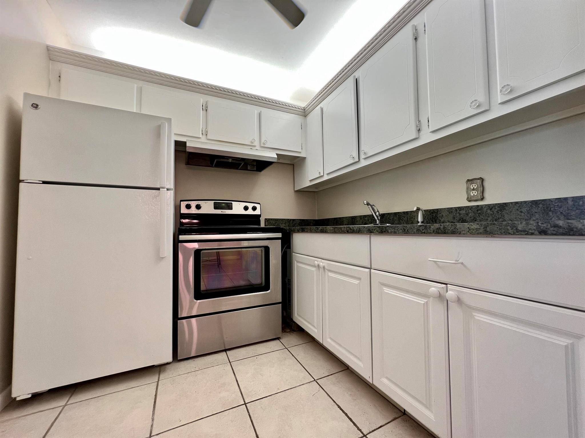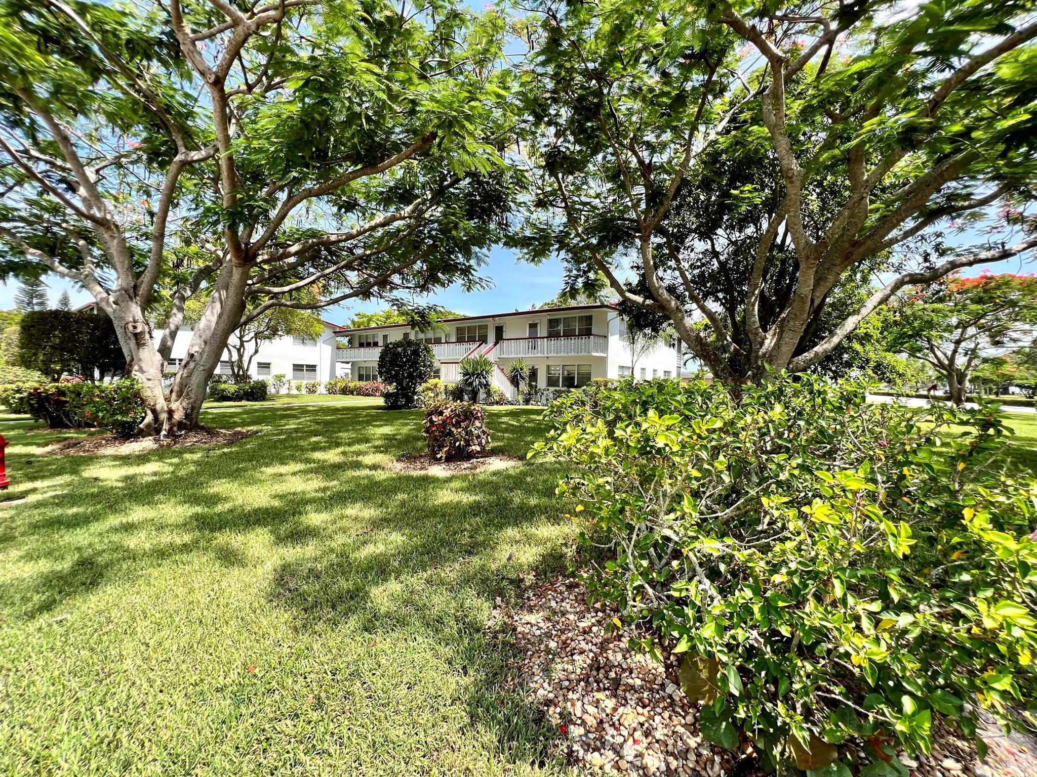 A Lovely Spot To Call Home In 55+ Century Village! Wonderful 1/1.5 floor plan that lives large. Neutral tile flooring throughout. Kitchen & baths have updates. Spacious bedroom suite with full ensuite bath with step-in shower, wall of closets, and access to the long lanai. The building has a lift and lovely mature trees and landscaping. The popular Kent pool is right around the corner.Century Village is a 55+ community with so much to offer...