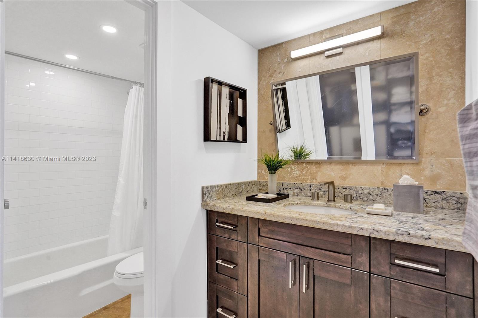 Breathtaking views of Biscayne Bay! This fully remodeled residence boasts over 1,350 SF of bright and spacious living area. Meticulous attention to detail, the 2-bedroom/2-bathroom layout features a split plan. The master bedroom includes generous customized walk-in closets and an ensuite bath with double sinks. The second bedroom is equally spacious, measuring 12.8X16, and features it's own ensuite bath w/ a separate entrance. The open kitchen is equipped with stainless steel appliances, granite countertops, & backsplash. The residence is also fitted with impact windows, ensuring both safety and tranquility. Enjoy the expansive terrace that overlooks the pool, gardens, and stunning bay. Two covered parking spaces. It is truly a must-see for anyone seeking a remarkable living experience.