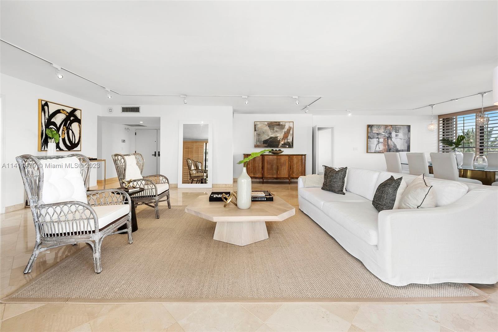 Exclusive island living on private guard-gated Grove Isle! Enjoy bay & ocean views from this spacious 2,614SF corner residence at one of Coconut Grove's most desired addresses. This home is a condo that lives like a house! It was converted to a 2BD + den, but can be converted back to a 3BD. Offering 2.5BA, elegant living areas, 2 terraces overlooking the water, eat-in kitchen w/stunning water & city views, a terrific floor-plan & ample storage. The primary suite offers a private balcony w/Biscayne bay views, 2 walk-in closets, & bathroom w/bidet, dual sinks, & separate tub & shower. Storage cage included! (7.6”H x 4.5”D x 3”W). Resort-style living at this full-service 20-acre island in Coconut Grove! Parking are NOT deeded or transferable. Building can accommodate up to 3 cars for buyer.