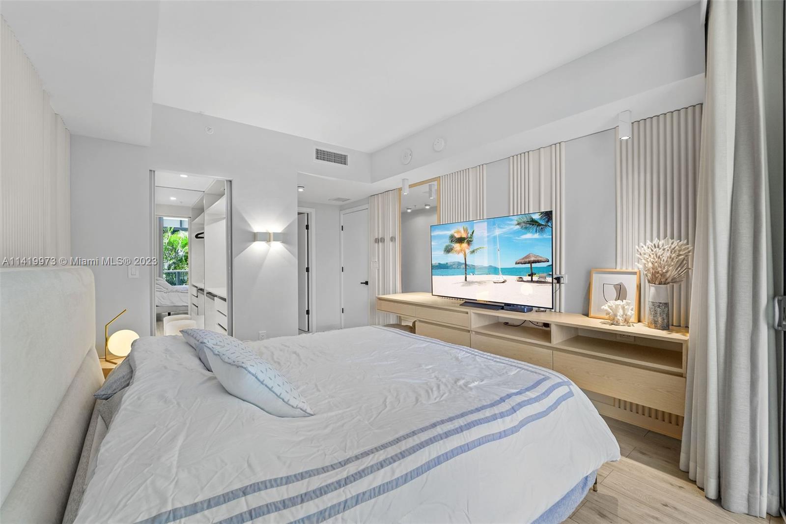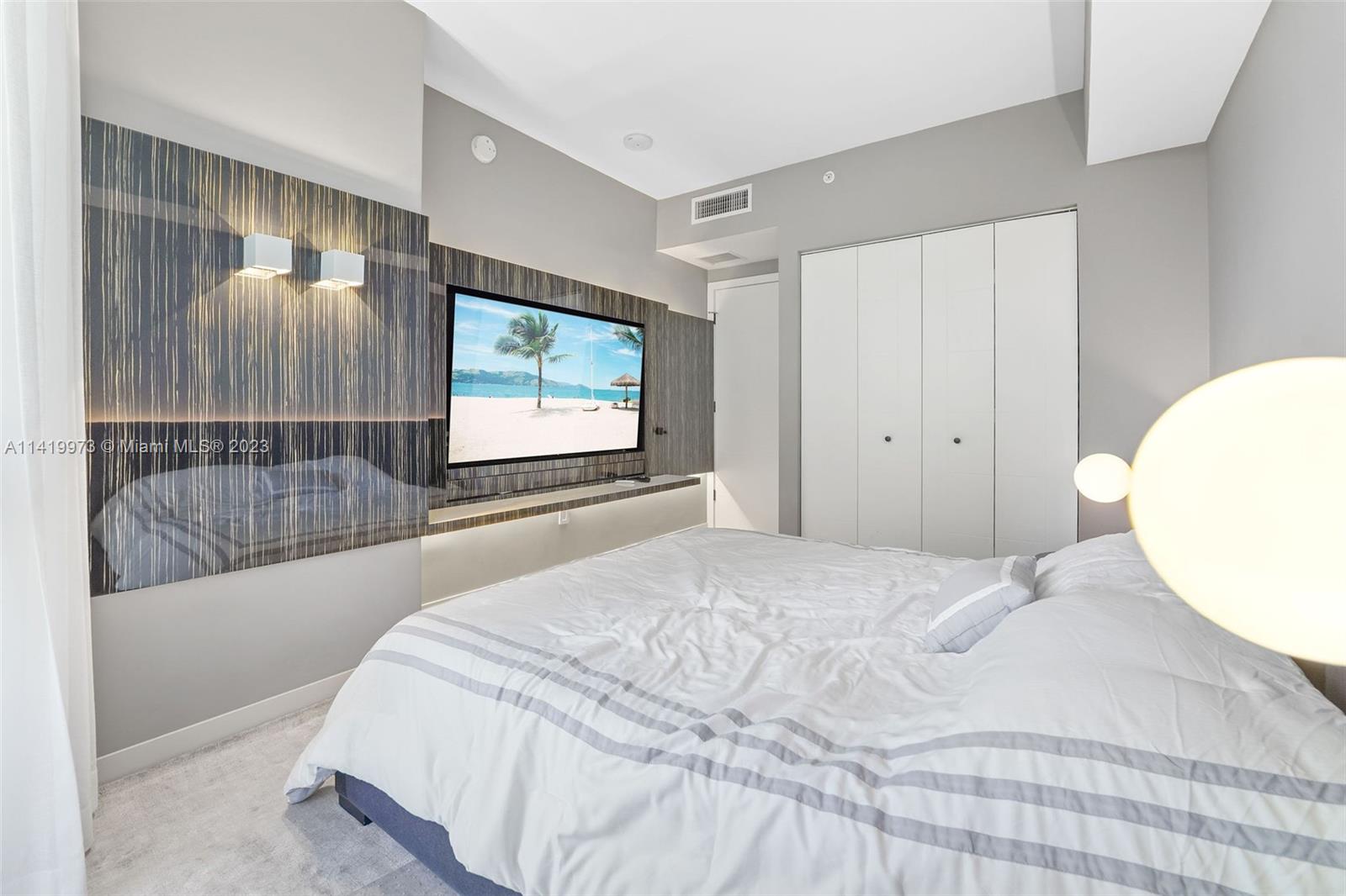 Professionally remodeled & furnished at Brickell Ten is available for sale. This home has been decorated with furniture from Artefacto & CB2. The remodeling includes custom wood paneling on several walls, solid wood built-in entertainment centers in the living room & both bedrooms, built-in bedroom furniture, high end custom closets, completely remodeled bathrooms & lighting throughout the unit. Brickell Ten is within walking distance to the offices, shops & restaurants that Brickell has to offer and has easy access to I-95. Amenities include a large pool area, rooftop gym & jacuzzi, club room and 24 hr security. The finishes, furniture & design of this unit is more commonly found in $1M+ properties.