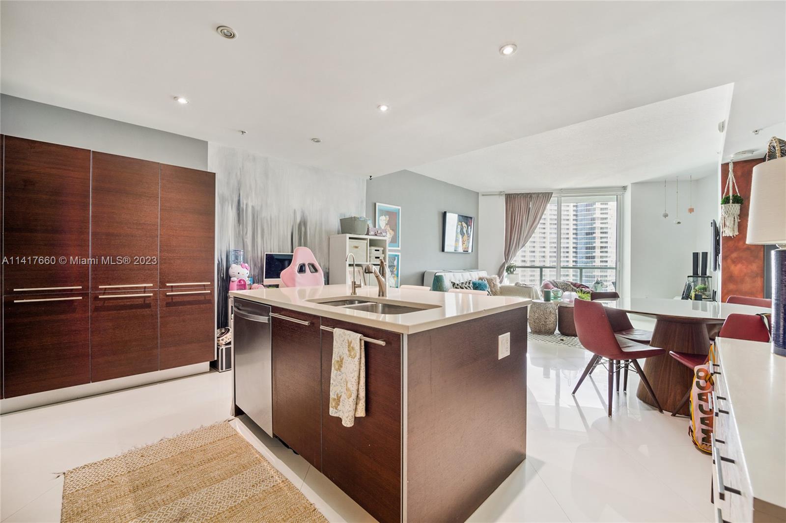 Experience the luxury of living at the Iconic Quantum on the Bay with a spacious 1 bedroom plus Den! Admire the spectacular view of the Bay and Edgewater's most luxurious buildings from the unit's large balcony, which also features floor-to-ceiling windows. The spacious den can easily function as a home office or a second bedroom. This unit includes a European-style open kitchen with stainless steel appliances, as well as an in-unit washer and dryer. With modern decor throughout the unit, it's a perfect place to call home. The building is located opposite Margaret Pace Park, which offers basketball, tennis, and volleyball courts.