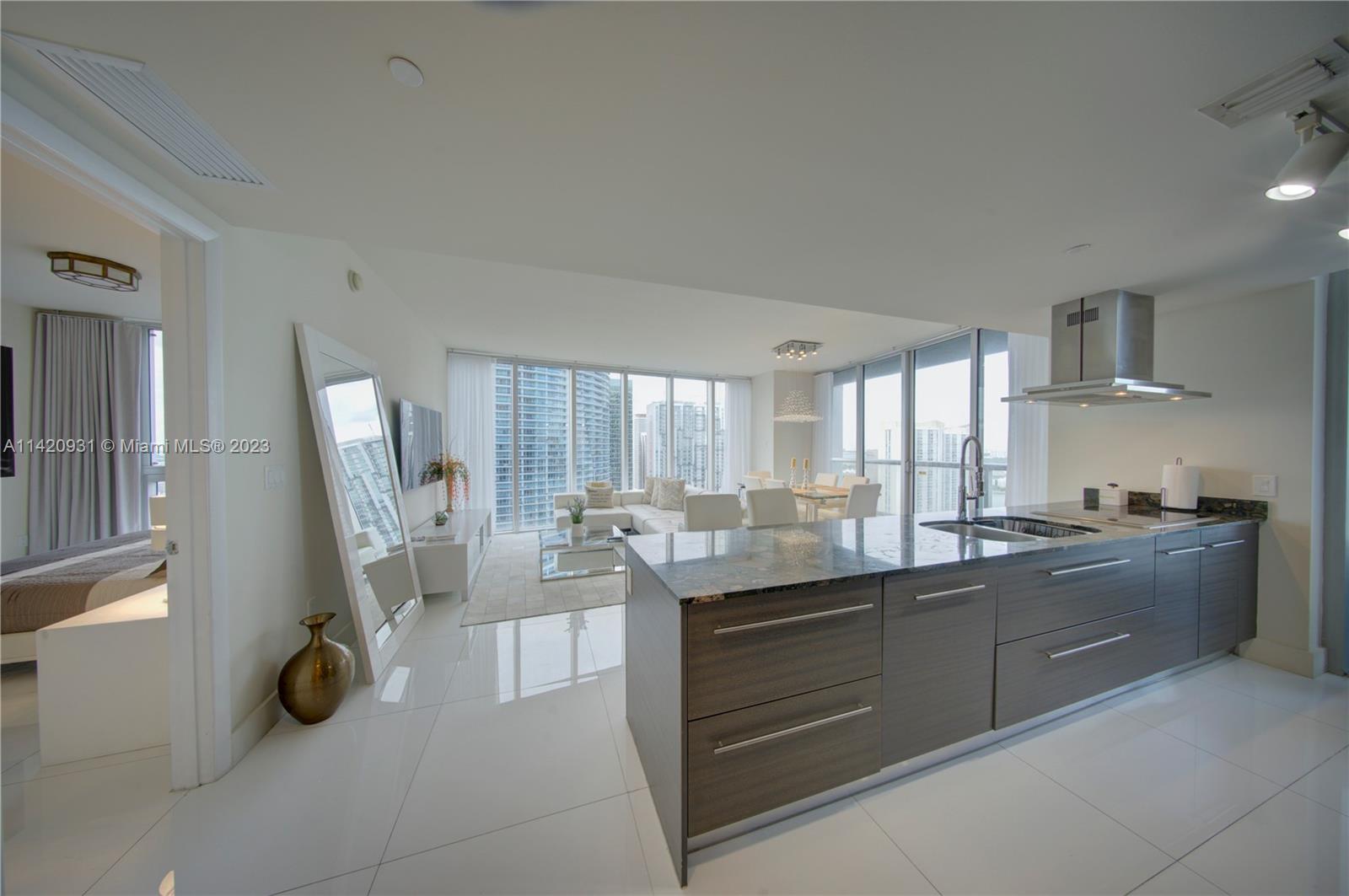 Unique and deluxe 5-star high-rise condo in the heart of Brickell has amazing bay, river, and city skyline views from balcony, day and night! This spacious 2 bed/2 bath unit with fully equipped kitchen is located in the same building as the famous W Hotel Miami and has access to spa with wet and dry saunas, fully equipped gym, and pool with poolside bar. This beautiful condo is steps away from fine dining, cafes, Brickell City Center Mall, Downtown Miami, and Metromover & Metrorail stations. Design District (Wynwood), Coconut Grove, and South Beach are minutes away by car. Condo is permitted for short-term rentals so it can be rented daily, weekly, monthly, or annually. Fully furnished and Airbnb ready!