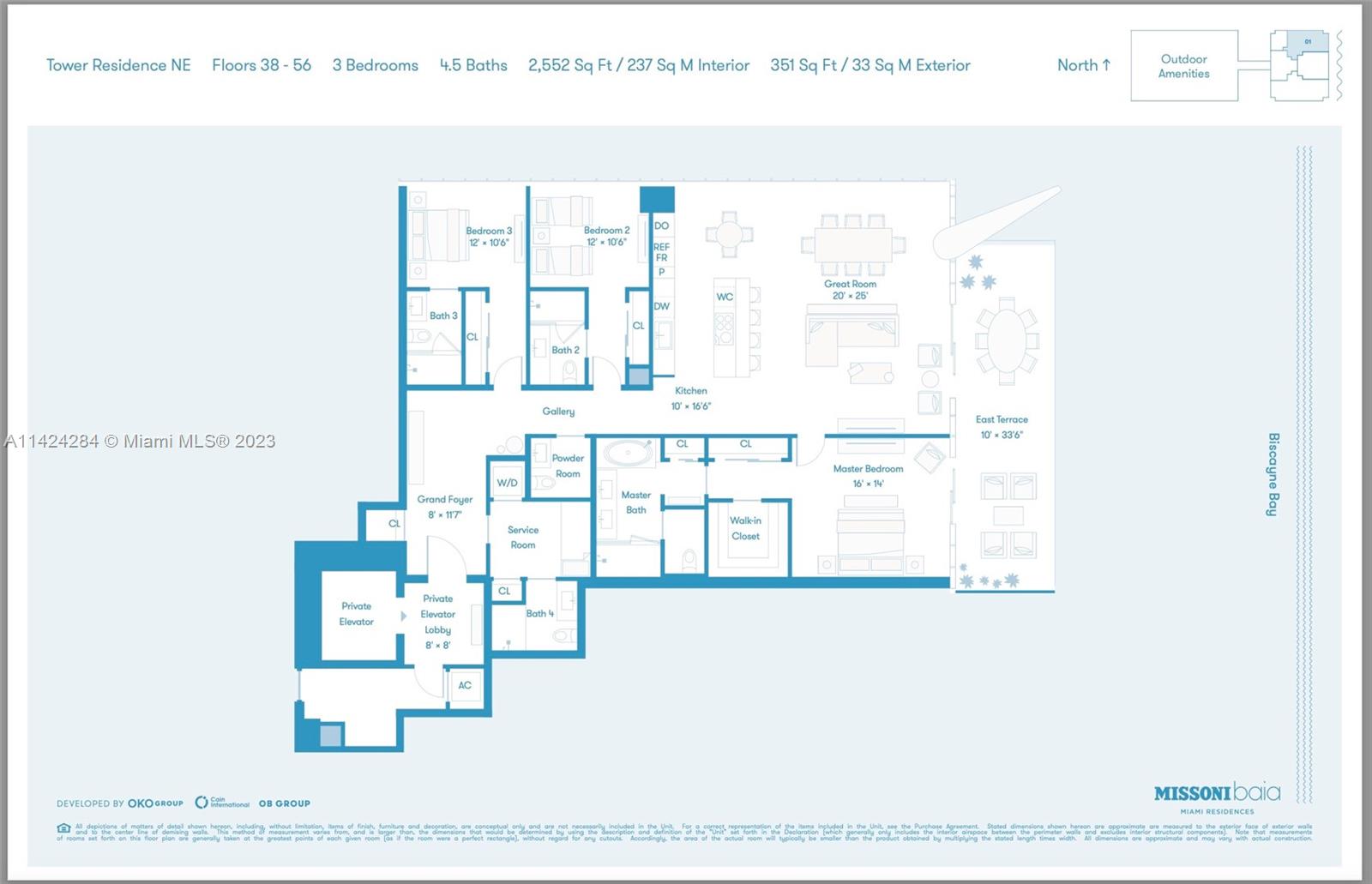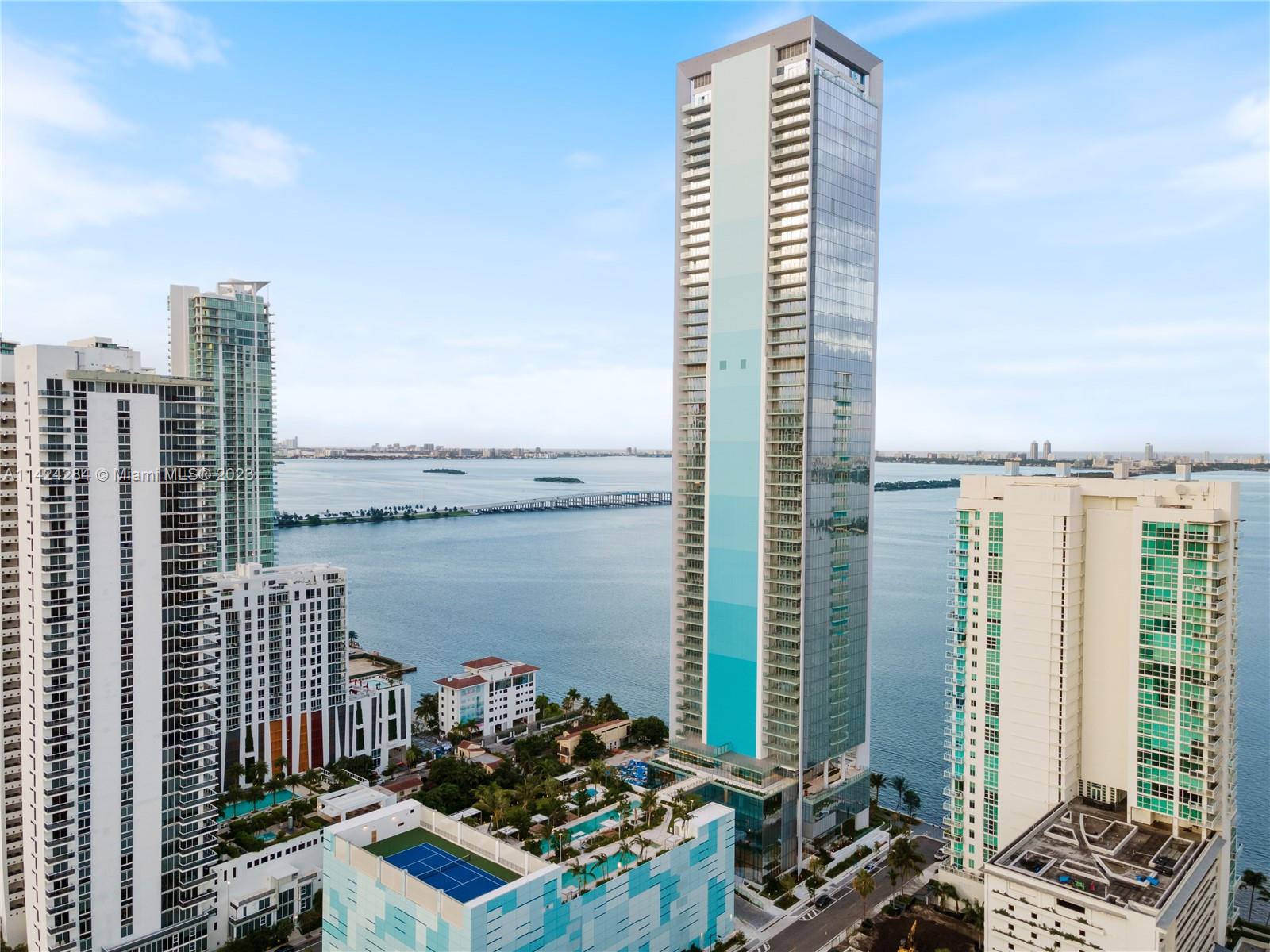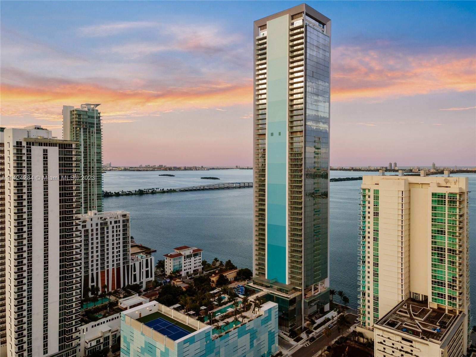 Introducing this breathtaking brand new Missoni Residence in Miami's vibrant Edgewater neighborhood featuring 3-bed, 4.5-bath + bonus den which can also be used as small 4th bed w en suite. Enjoy stunning bay, skyline, and ocean views from the expansive balcony, complemented by 10'ft ceilings. The private elevator grants exclusive access to your home, featuring a grand foyer for a luxurious living experience. With a dedicated service area and private storage, convenience is unmatched. Spacious living areas, floor-to-ceiling windows, and elegant marble floors create a bright, inviting atmosphere. The gourmet kitchen boasts top-of-the-line appliances, Italkraft cabinetry, and wine cooler. Amenities include fitness center, three pools, saunas, tennis courts, BBQ area, pet spa, and playrooms.