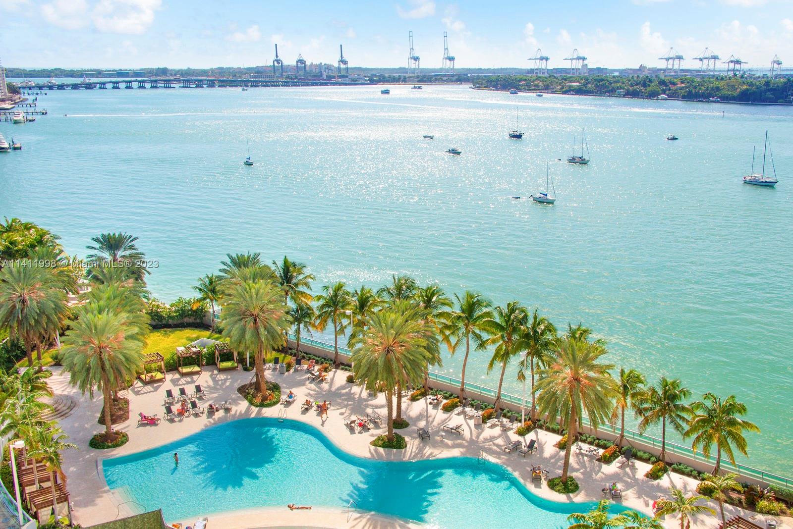 *Open House by appointment only* Bay front 2BD/2BA condo with monthly rentals permitted! Tropical lifestyle, work from home on balcony with stunning views of palm trees & sailboats. Wood floors, kitchen bar, & open living space. Spanning almost 17 acres, the complex features lush gardens with beautiful fountains, creating an atmosphere of serenity and escape. Relax with two bay front pools, a sandy beach, hammocks, a Jacuzzi and on-site dining. Stay active and healthy with the 14,000 square foot fitness center, and unwind with spa services that will leave you feeling pampered. Indulge yourself in the breathtaking 1,300-foot-long bay walk, perfect for leisurely strolls or invigorating jogs. Find basketball and beach volleyball courts ready for action, ensuring there's never a dull moment.
